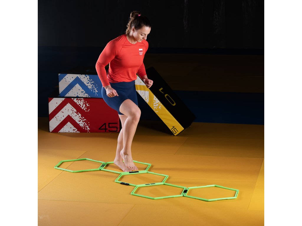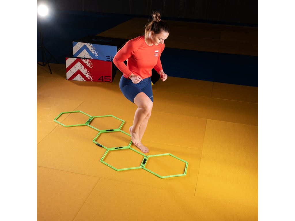 Agility HEX rebrík HMS SKR06 je skvelou pomôckou pre rozvoj fyzických zdatnosťou. Tento rebrík slúži k rozvoju koordinácie, rýchlosti a obratnosti. SKR06 nájde uplatnenie v každom športe, kde sú tieto parametre potrebné. Vďaka spojkám, možno šesťuholníky podľa potreby rôzne tvarovať, aby vyhovovali Vášmu tréningu.