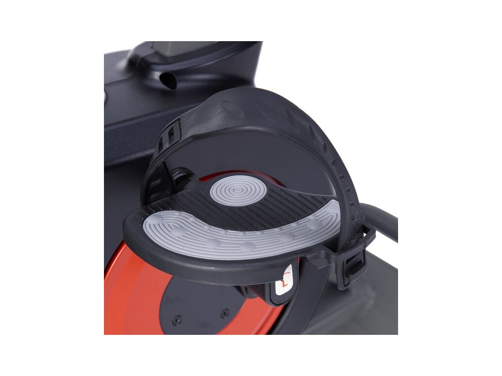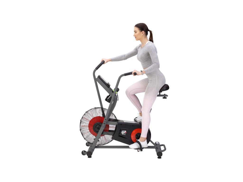 Pohyblivé madlá zapájajú do tréningu ruky, vďaka tomu je jazda na Air biku náročnejšie a zapája do práce väčšiu časť tela, než bežný rotoped. Na konštrukciu nájdeme tiež 2 stupačky, na ktoré si položíme chodidlá a Air Bike MP8880 môžeme roztáčať iba rukami. Táto variabilita nám umožňuje 3 druhy tréningu - iba nohy, iba ruky, celé telo. Trenažér je tiež vybavený 4,6 kilogramovým záťažovým okolo, ktoré má na starosti plynulosť pohybu a vyrovnávanie slepých uhlov počas pohybu choditel.