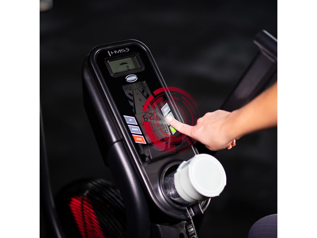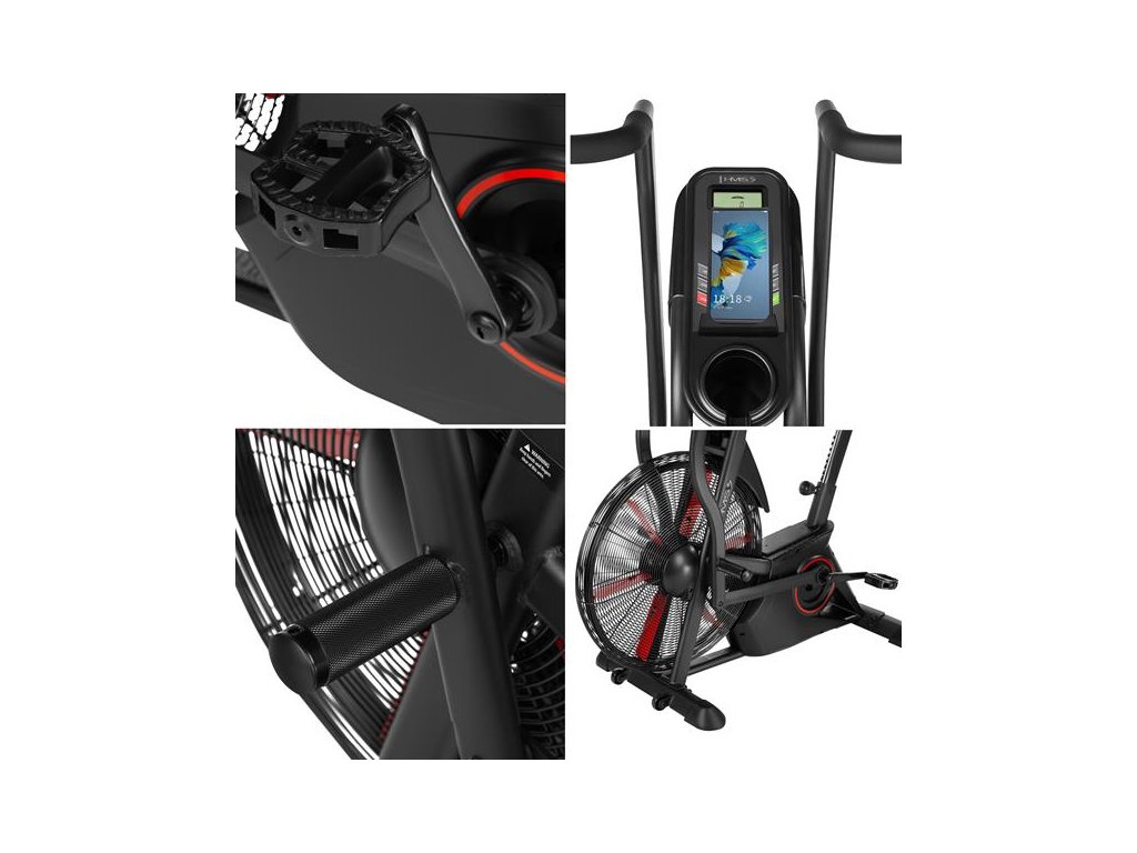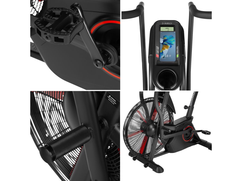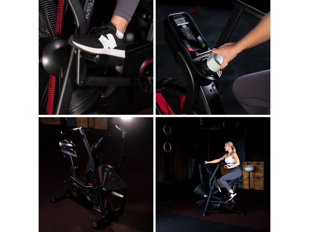 Air bike je vybavený LCD displejom, ktorý umožňuje sledovať kľúčové parametre tréningu: čas, vzdialenosť, rýchlosť, pulz, spálené kalórie a otáčky za minútu. Nastaviteľné sedlo vo vertikálnom a horizontálnom smere umožňuje precízne prispôsobenie pozície podľa výšky a postavy, čo zaisťuje komfort aj pri dlhodobom používaní. Praktické doplnky, ako držiak na fľašu, telefón a transportné kolieska, zvyšujú pohodlie pri používaní zariadenia.