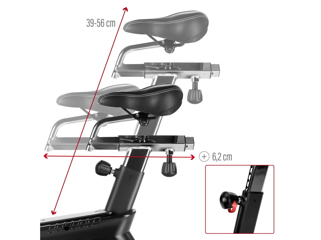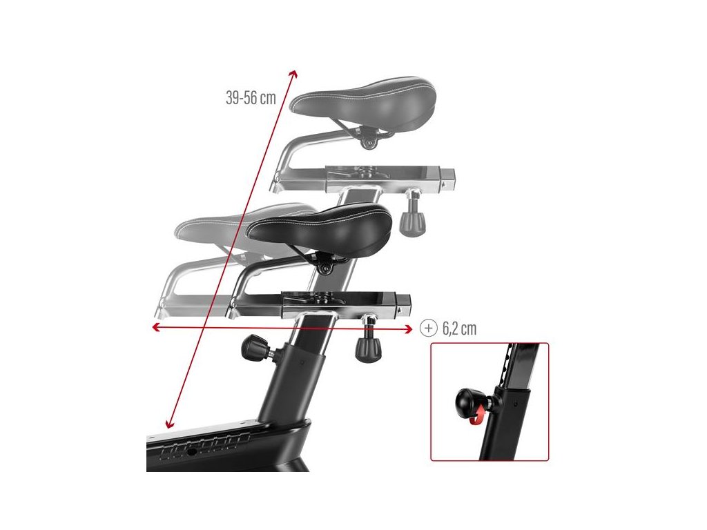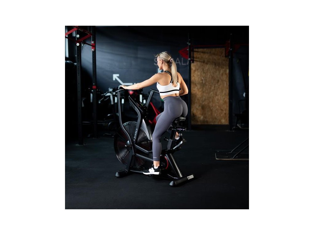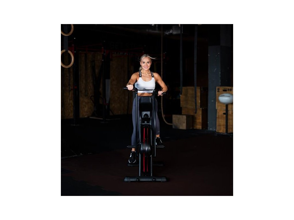 Air bike je vybavený LCD displejom, ktorý umožňuje sledovať kľúčové parametre tréningu: čas, vzdialenosť, rýchlosť, pulz, spálené kalórie a otáčky za minútu. Nastaviteľné sedlo vo vertikálnom a horizontálnom smere umožňuje precízne prispôsobenie pozície podľa výšky a postavy, čo zaisťuje komfort aj pri dlhodobom používaní. Praktické doplnky, ako držiak na fľašu, telefón a transportné kolieska, zvyšujú pohodlie pri používaní zariadenia.