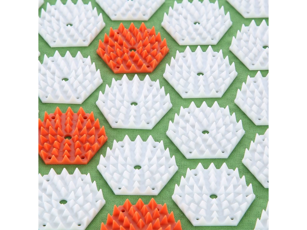 Podložka obsahuje celkovo 8.640 plastových ihličiek, ktoré sa nachádza na špeciálne tvarovaných rozetách. Tento počet akupresúrnych bodov je zárukou optimálneho tlaku pri nalehnutí.