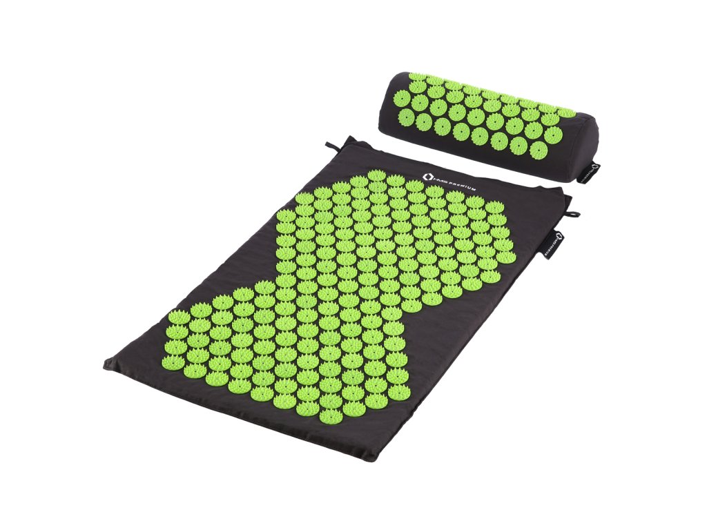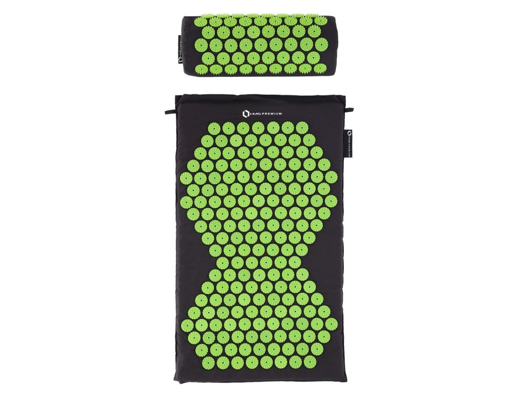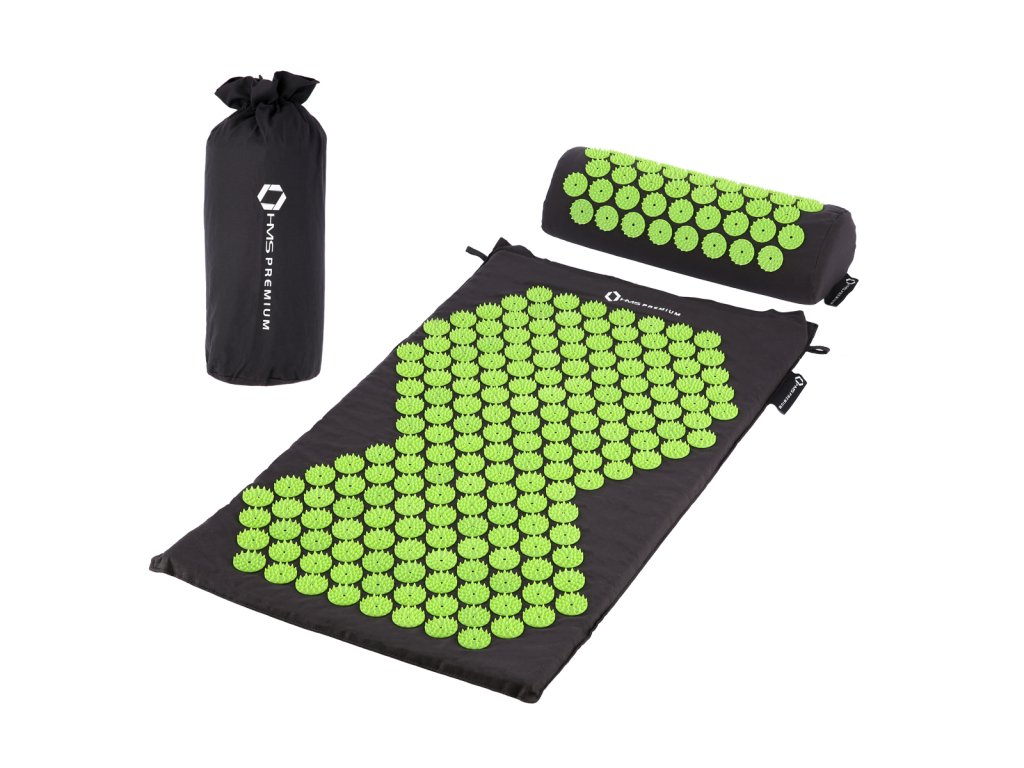 Akupresúrna sada HMS Premium AKM03 obsahuje masážnu podložku, vankúšik a vak pre ľahké uskladnenie.