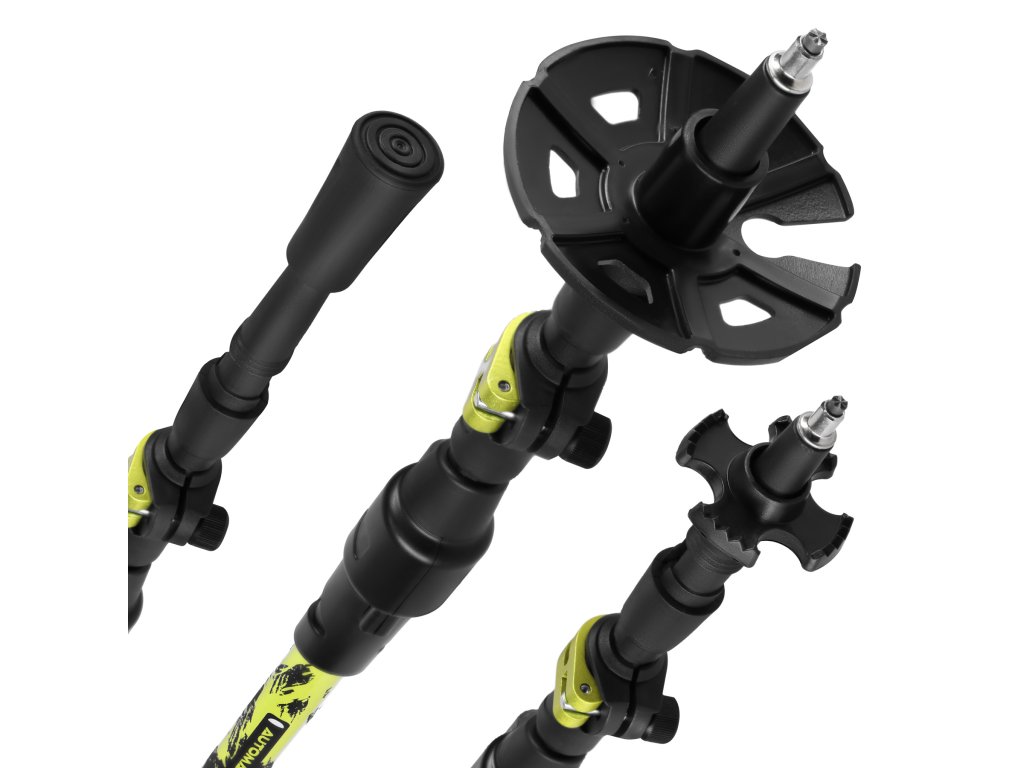 Dĺžka spodného segmentu palice sa nastavuje manuálne a uzamyká sa hliníkovým zámkom. Dĺžka stredného segmentu sa nastavuje pri stlačenom tlačidle na hornej strane rukoväte a palice tak ide upraviť bez potreby zastavenia.