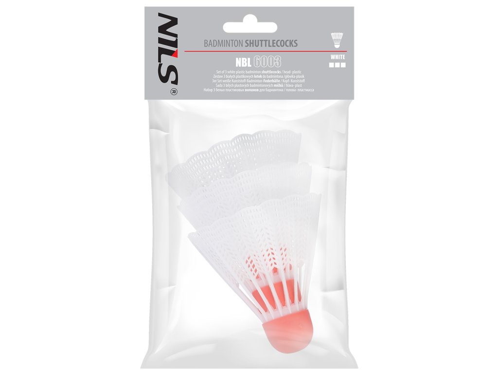 Bedmintonové loptičky NILS NBL6003 majú gumovú základňu a nylonový košík. Nylonové letky majú dlhšiu životnosť ako letky z peria. Gumová základňa zaisťuje dobrú rovnováhu a vysokú kontrolu letu.