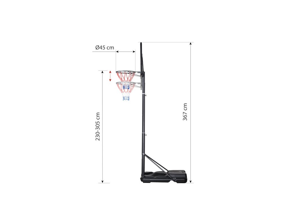 - Výška obruče od zeme: 2,3 - 3,05 m