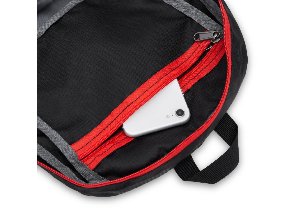 Vnútri batohu je vrecko na zips, ktoré zároveň slúži ako integrovaný obal