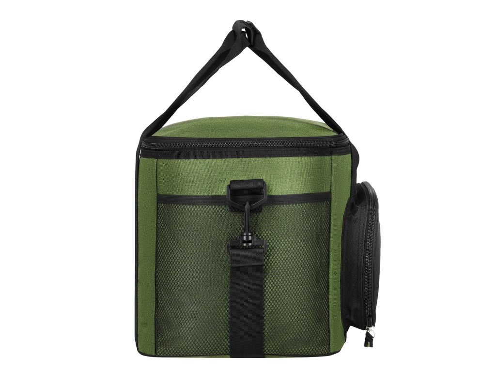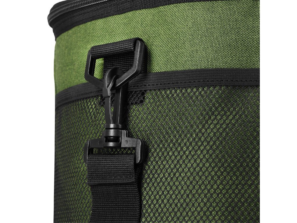 Hlavný priestor tašky je zakončený odolnou a pre potraviny bezpečnou vrstvou PEVA, ktorá účinne izoluje vnútorný priestor a udržuje správnu teplotu uložených produktov. Ďalšia vrstva PE zvyšuje izolačnú účinnosť, zatiaľ čo odolný vonkajší materiál – polyester 600D – chráni obsah pred vlhkosťou a mechanickým poškodením. Vďaka tomu sa taška osvedčí bez ohľadu na počasie a ročné obdobie.