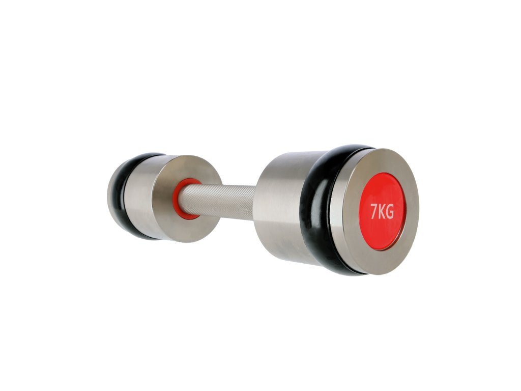 Ako materiál je použitá vysoko kvalitná chrómovaná oceľ, ktorá zaručuje dlhú životnosť, odolnosť voči poškodeniu a zamedzuje oxidácii. Činky sú opatrené mriežkovanou rukoväťou pre pevný a istý úchop. Na rozšírenej časti činiek je navlečený silikónový krúžok, ktorý chráni ako činku, tak podlahu pred poškodením.