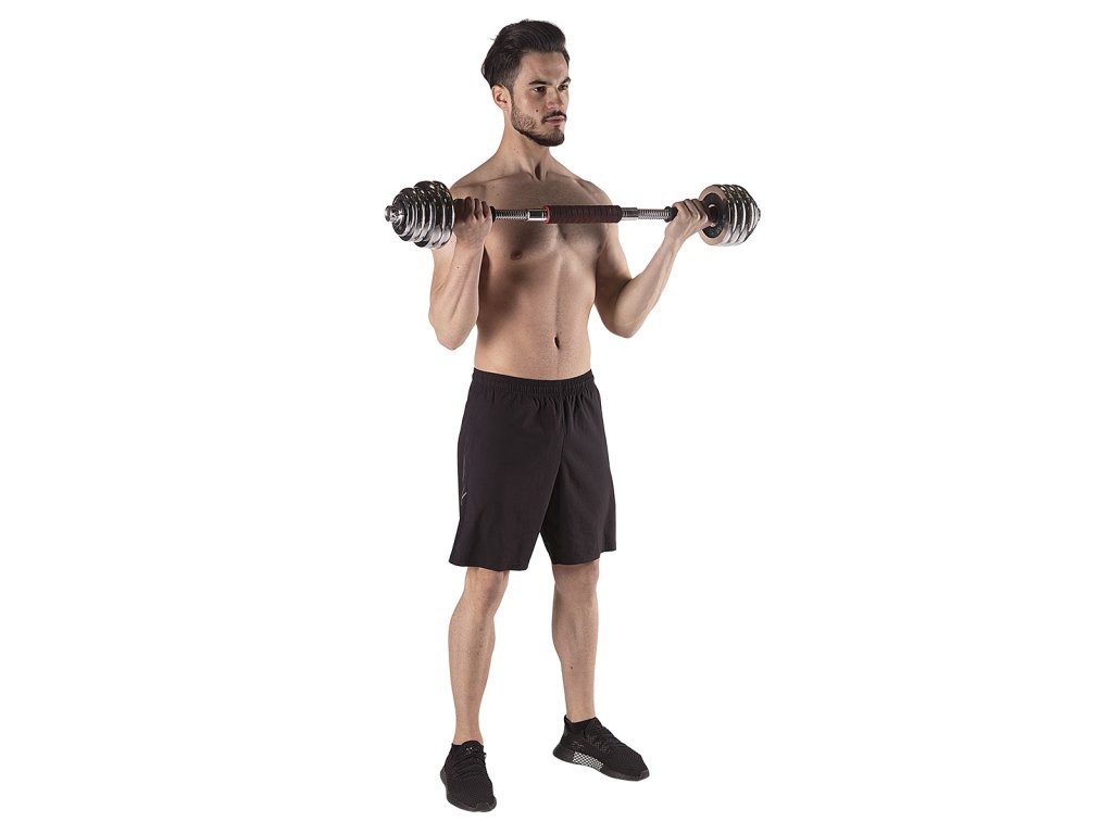 Špeciálny spojovací diel je po stranách opatrený závity, do ktorých sa jednoducho všroubují obe cinky. Sada HMS STC30 je prvým modelom z našej ponuky, ktorý umožnuje toto riešenie, ktoré šetria náklady a miesto vo Vašej domácej posilnovni. Sada obsahuje 2 krátke, nakladacie osi opatrené ergonomickým úchopom, spojovací diel, 4 zámky a 16 kotúcov.