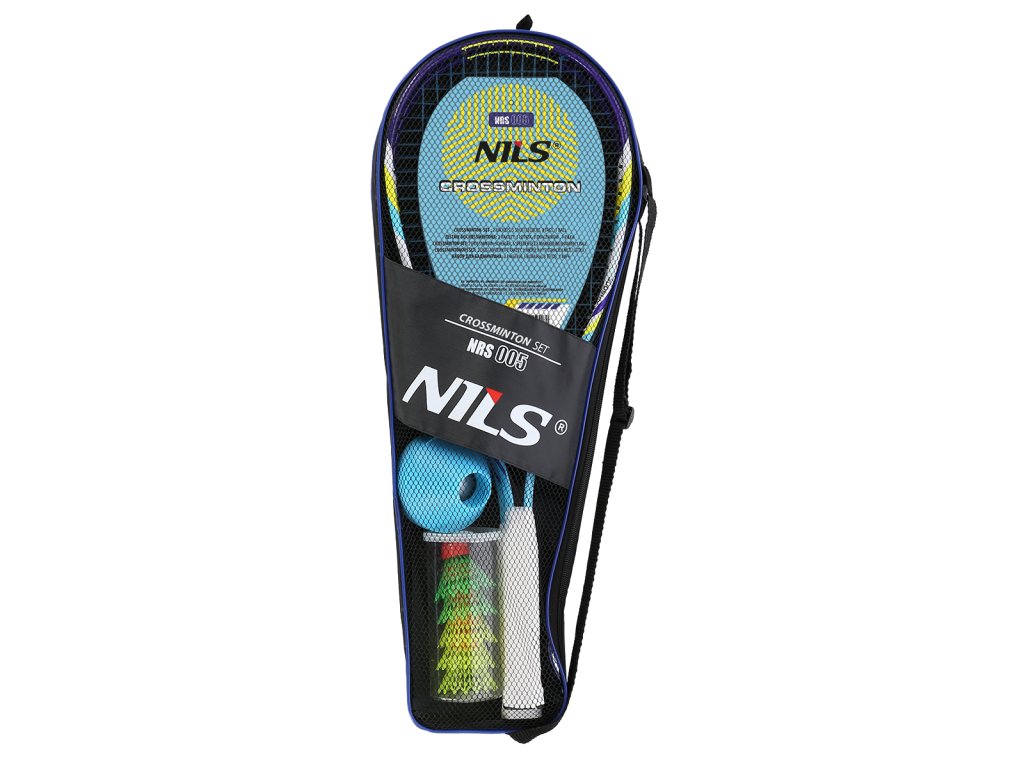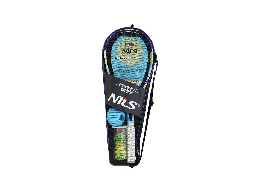 NILS NRS005 je súprava na hranie crossmintonu (známeho aj ako speed badminton alebo speedminton), ktorá obsahuje 2 rakety, 3 speedery, 1 penovú loptičku, 8 hríbikov na vyznačenie hracej plochy a obal.