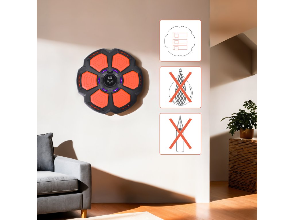 Elektronický boxerský terč HMS TB06 s LED, Bluetooth a rukavicami (Music Boxing Machine)