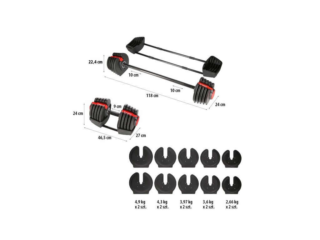 Jednoručná / obojručná variabilná činka HMS SGR40 PRO SET 2v1 40 kg
