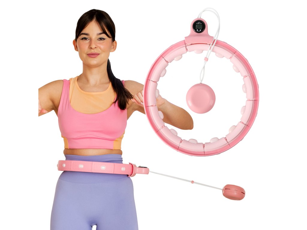 Masážna obruč FH02 so závažím a počítadlom ružová