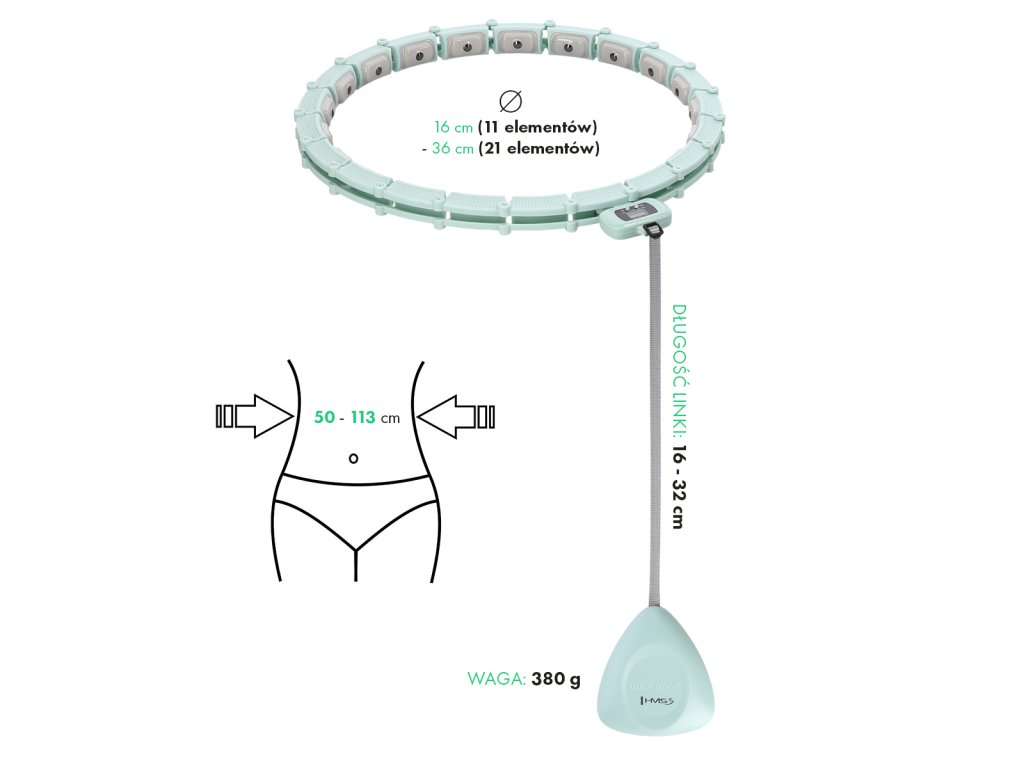 Masážna obruč HMS HHM14 so závažím a počítadlom zelená