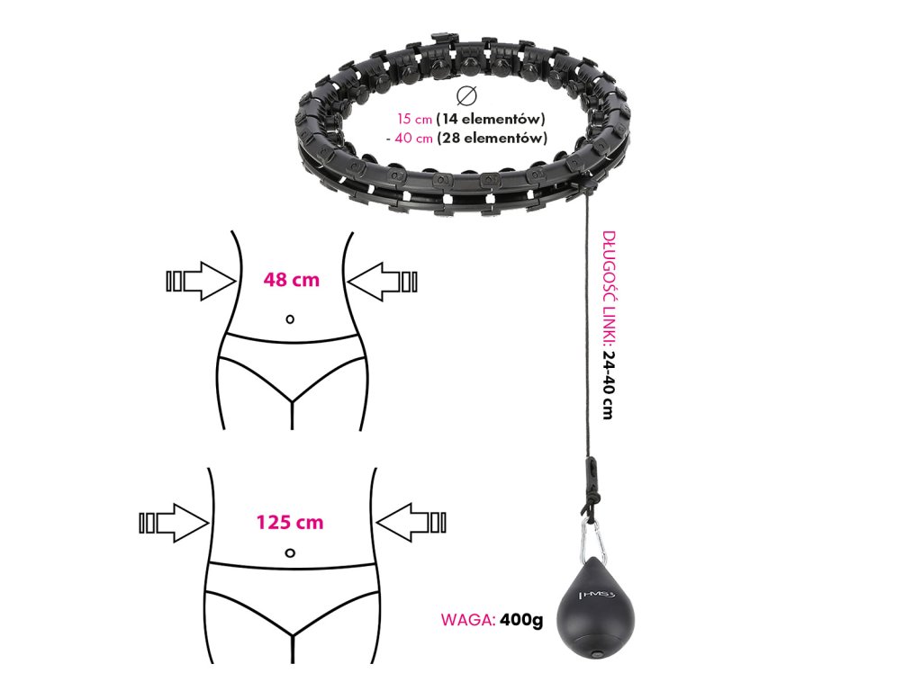 Masážna obruč HMS HHW12 plus size so závažím čierná