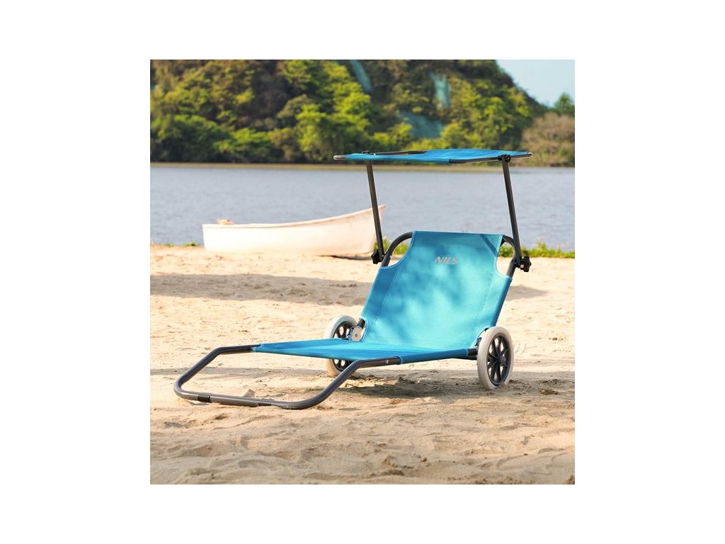 Plážové lehátko s tienidlom NILS Camp NC3307 modré
