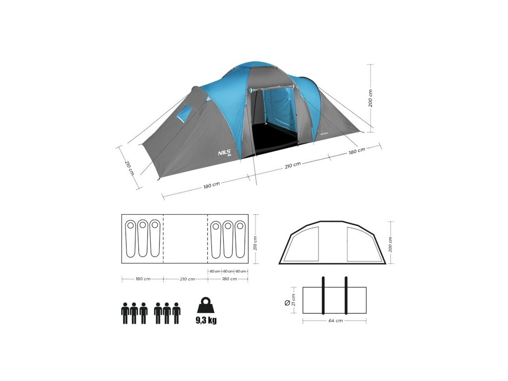 Rodinný stan NILS Camp NC6031 Highland modro-sivá