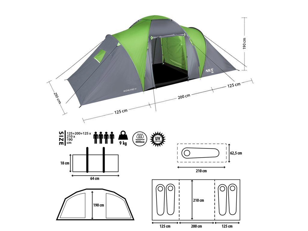 Rodinný stan NILS Camp NC6431 Highland IV zelený/sivý