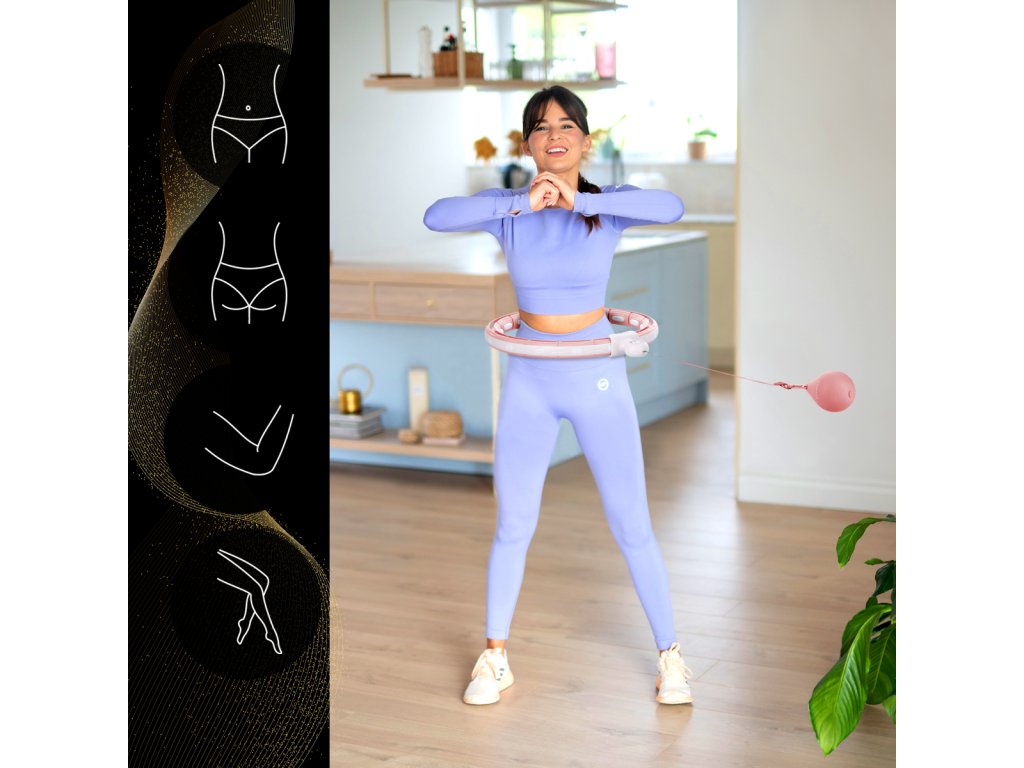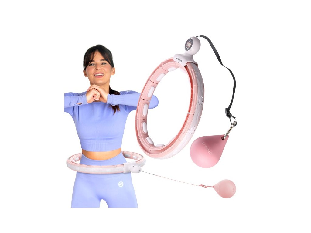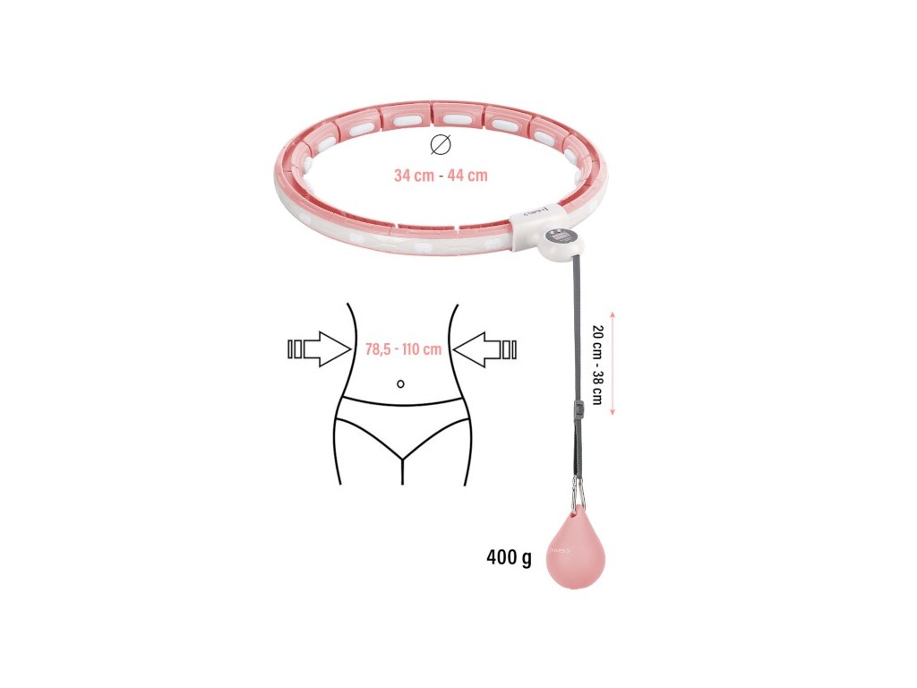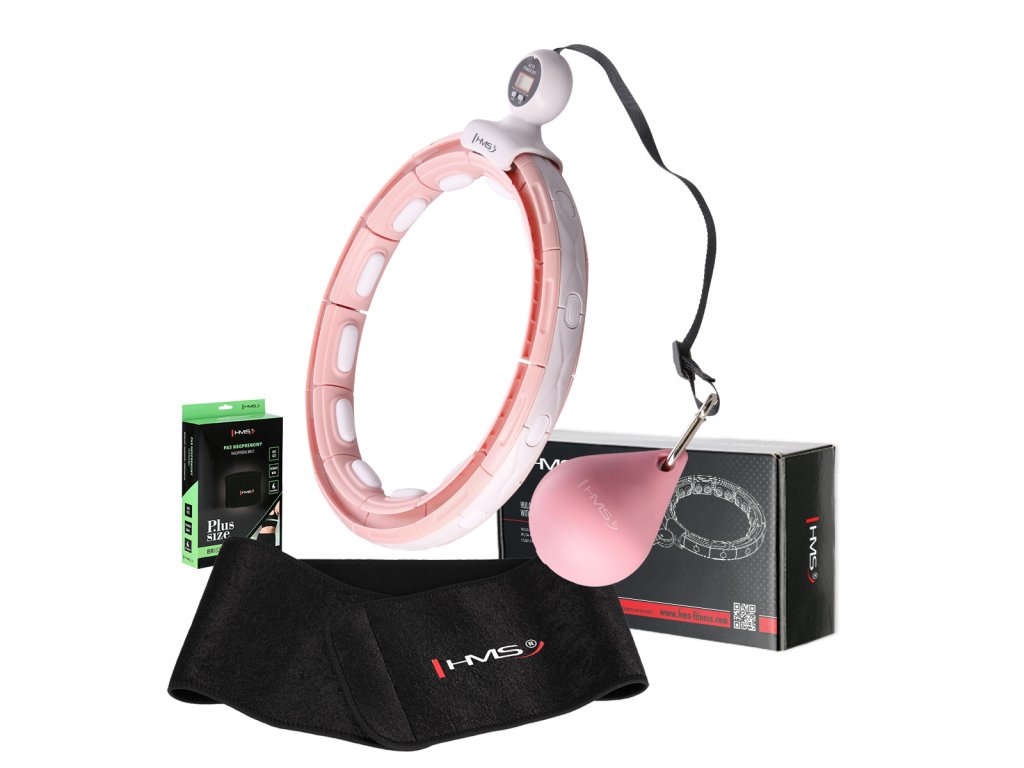 Sada masážnej obruče HMS HHM15 ružovej so závažiami, magnetmi, počítadlom a zoštíhľujúcim pásom BR163 PLUS SIZE