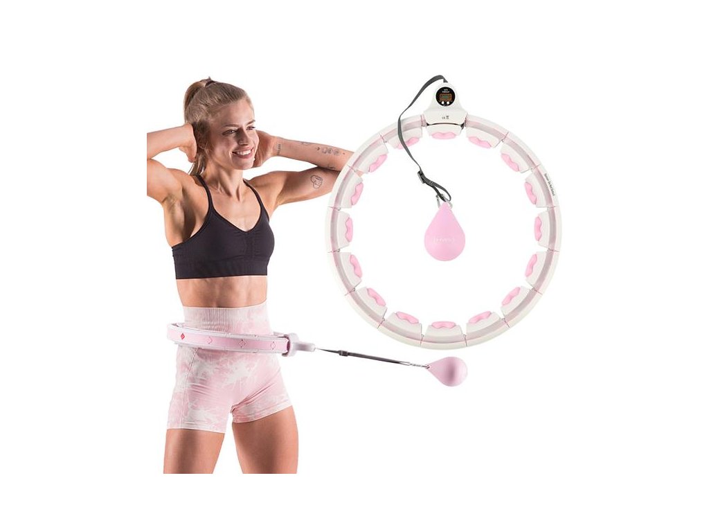 Sada masážny hula hoop HMS HHW06 ružový so závažím a počítadlom a zoštíhľujúceho pásu BR163 plus size