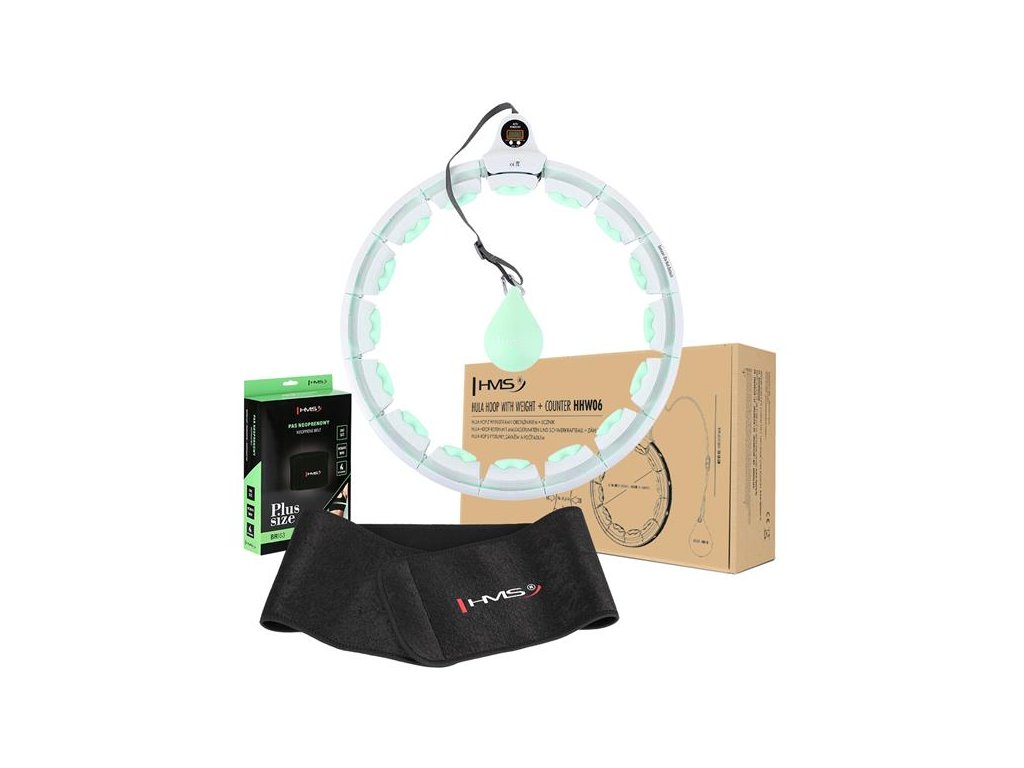 Sada masážny hula hoop HMS HHW06 zelený so závažím a počítadlom a zoštíhľujúceho pásu BR163 plus size