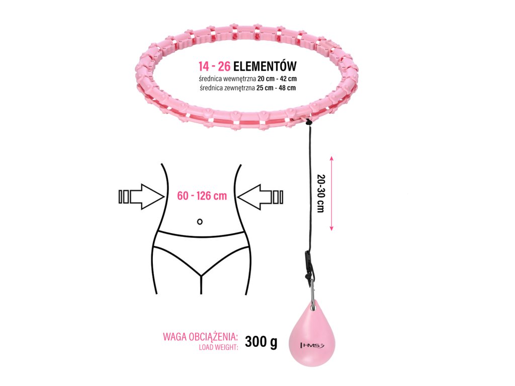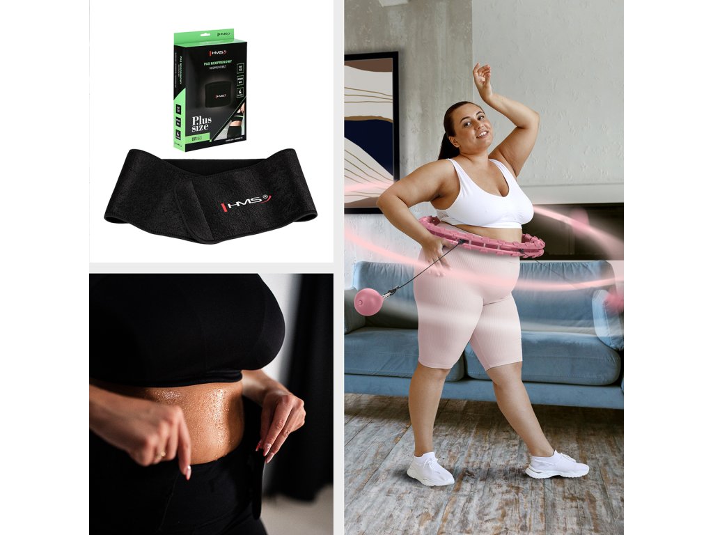 Sada ružovej masážnej Hula Hoop so závažím HMS HHW11 a zoštíhľujúceho bedrového pásu HMS BR163 PLUS SIZE