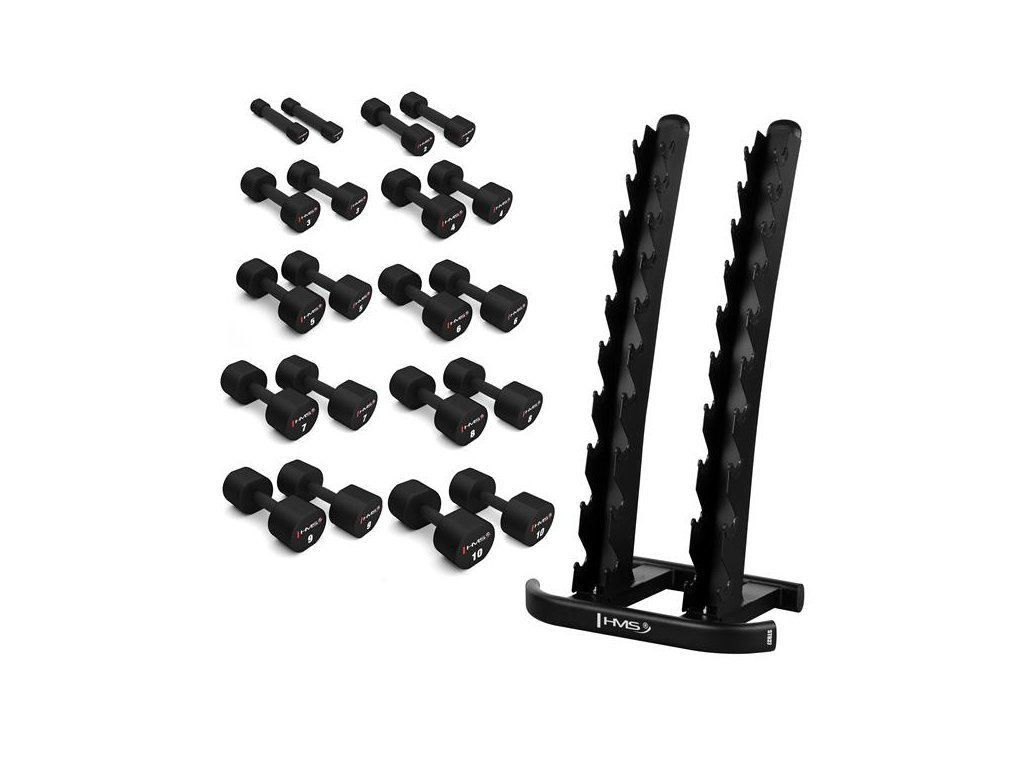 Súprava 10 párov jednoručiek HMS HPT 1-10 kg a stojana STR37