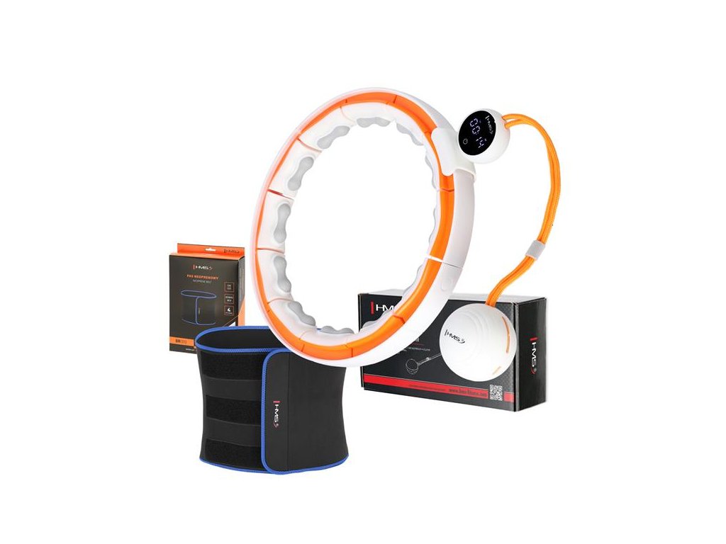 Súprava masážnej obruče so závažím HMS HHM21 a zoštíhľujúcim pásom BR1313 biela/oranžová