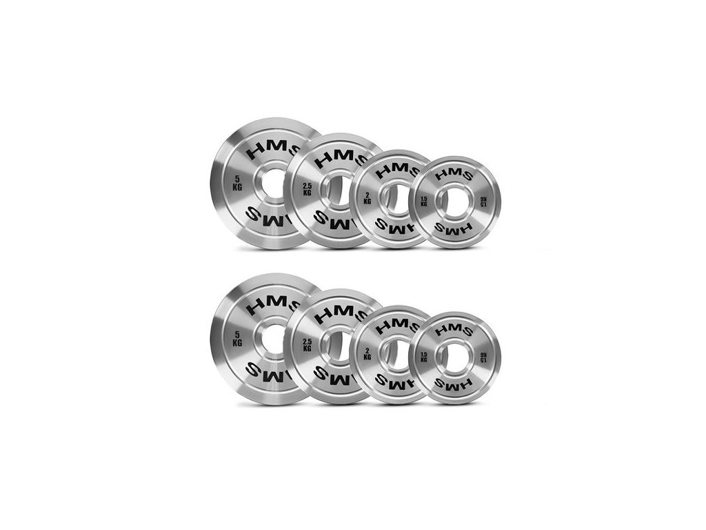 Súprava oceľových olympijských kotúčov HMS TOS 2 x 1,5 - 5,0 kg (22 kg)