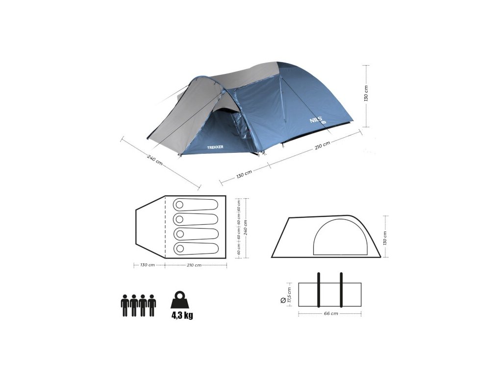Turistický stan NILS Camp NC6012 Trekker modro-sivý