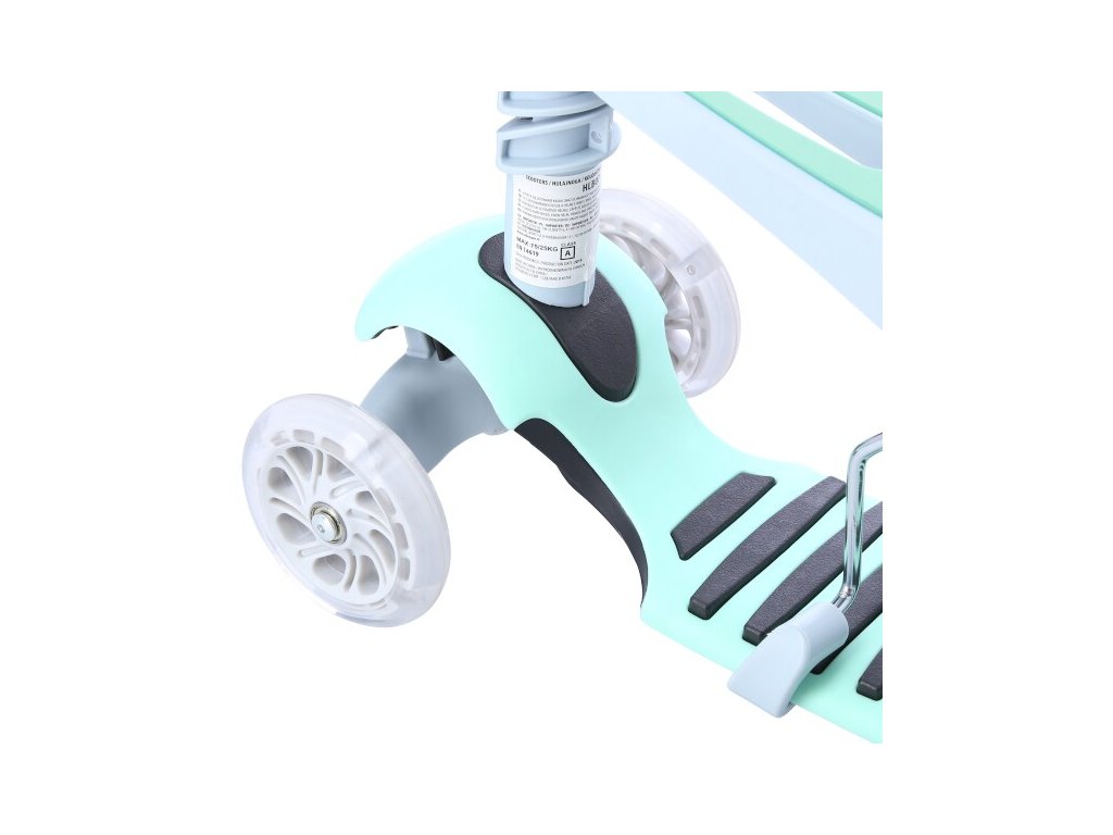 Kolobežku získame po následnej demontáži sedátka. Deck je opatrený prúžky z tvrdej gumy, ktoré zabraňujú sklznutie nohy zo stupačky. Tri kolieska sú garanciou vysokej stability. Vďaka riadenie pomocou naklápania je kolobežka maximálne bezpečná a nehrozí jej prevrhnutie. Teleskopická riadidlá slúži primárne pre udržanie rovnováhy a sú opatrené gripy z termoplastickej gumy pre istý úchop. Svietiace kolieska sú osadené ložiskami ABEC5. Zadné koliesko je opatrené nášľapnou brzdou Flex Fender pre rýchle a bezpečné zastavenie. Nosnosť kolobežky je 75 kilogramov.