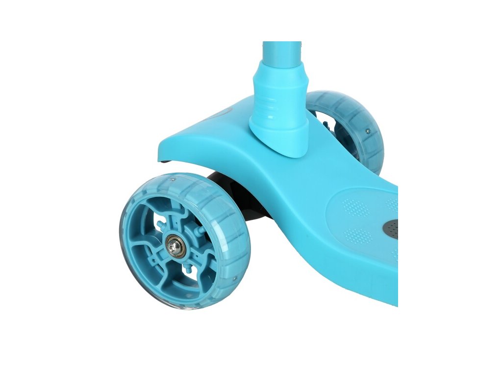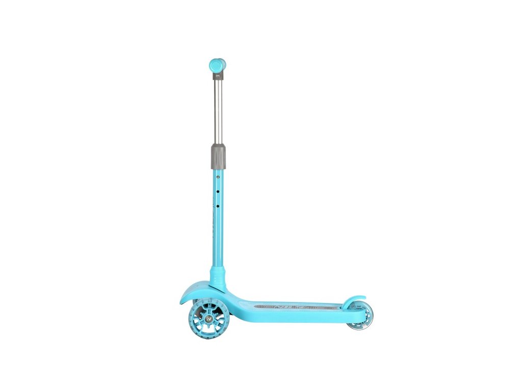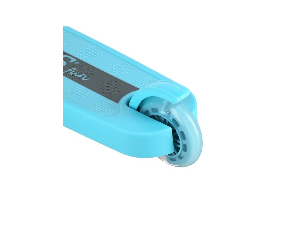 Predné kolesá s priemerom 120 milimetrov sú vybavené bielymi LED diódami, zadné kolesá s priemerom 90 milimetrov farebnými LED diódami. Svietiace LED diódy slúžia ako zaujímavý vizuálny prvok, zvyšujú záujem detí a v neposlednom rade zvyšujú viditeľnosť kolobežky, napríklad za súmraku. Kolieska sa rozsvecujú automaticky pri otáčaní. Okrem toho sú kolieska vybavené ložiskami ABEC 7 pre hladkú jazdu. Zadný blatník slúži ako nášľapná brzda na bezpečné zastavenie kolobežky.