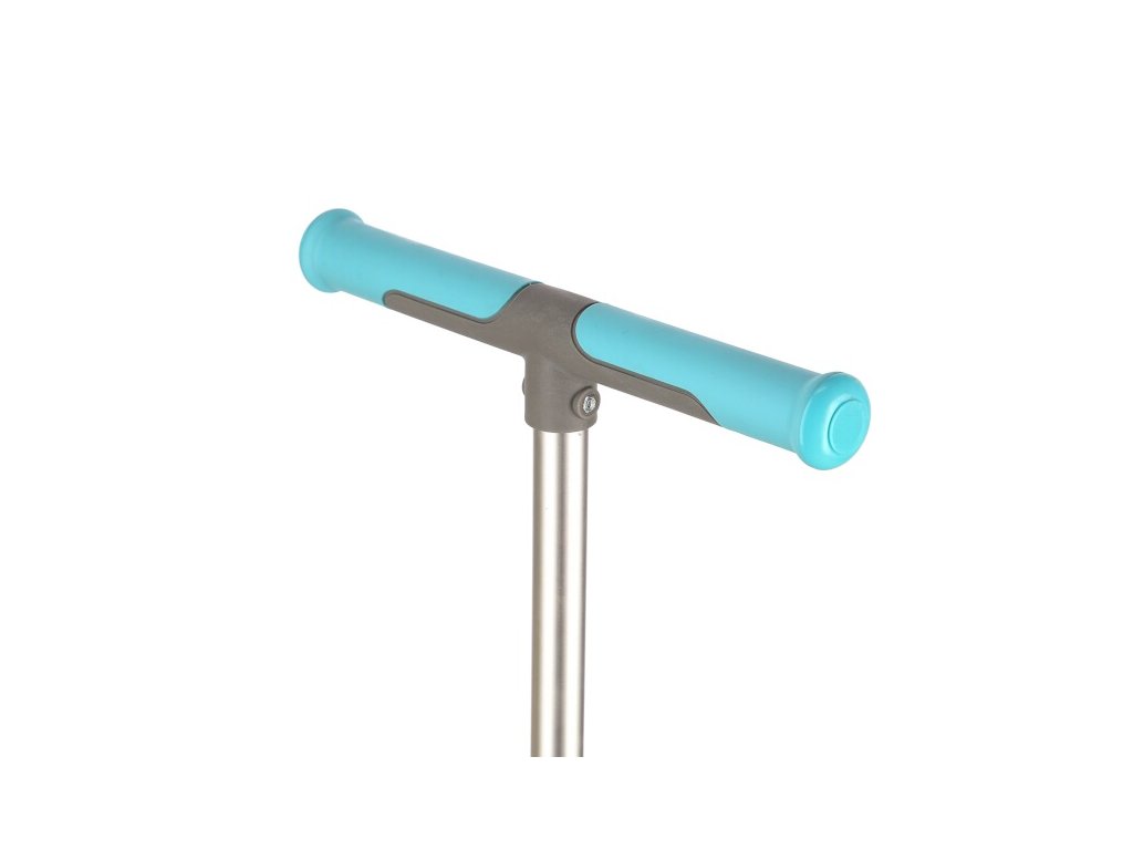 Teleskopické riadidlá sú výškovo nastaviteľné v 3 polohách (72,5 - 76,5 - 81 cm od zeme). Výškové nastavenie sa mení uvoľnením objímky, stlačením poistného kolíka a vysunutím alebo zasunutím vnútornej tyče riadidiel. Na úsporu miesta možno riadidlá odňať stlačením tlačidla, ktoré je prístupné zo spodnej strany kolobežky. Tento systém skladania je mimoriadne bezpečný a počas jazdy sa nedá náhodne zložiť. Rukoväte na riadidlách sú vyrobené z kombinácie plastu a gumy pre pevný úchop a šírka riadidiel je 32 cm.