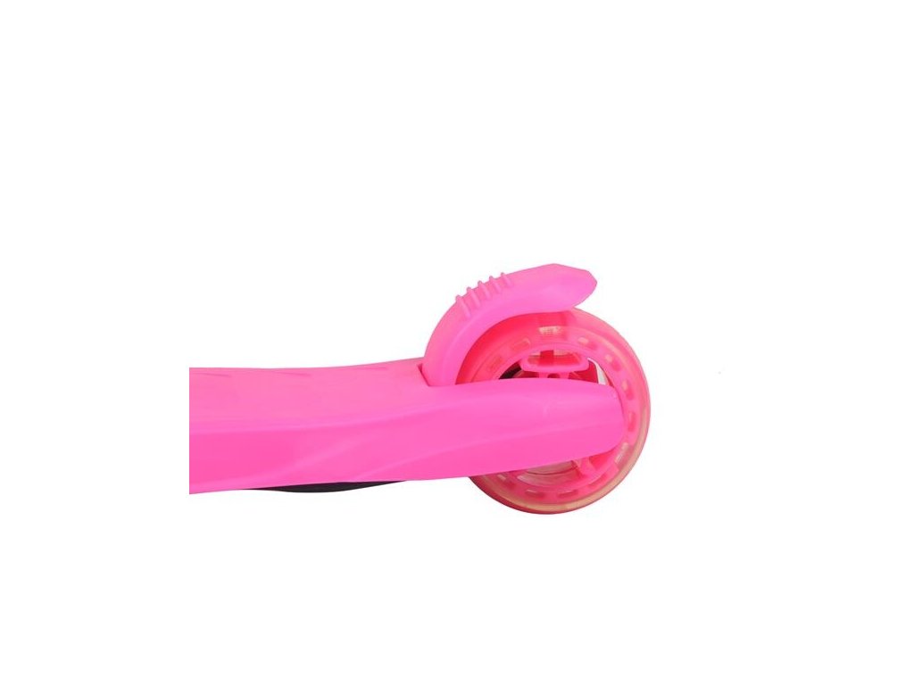 Všetky kolieska v sebe majú ukryté LED diódy, ktoré sa pri pohybe rozsvieti, široké zdaní koliesko zvyšuje stabilitu kolobežky. Riadidlá je možné výškovo nastaviť v rozmedzí 63 - 80 centimetrov.