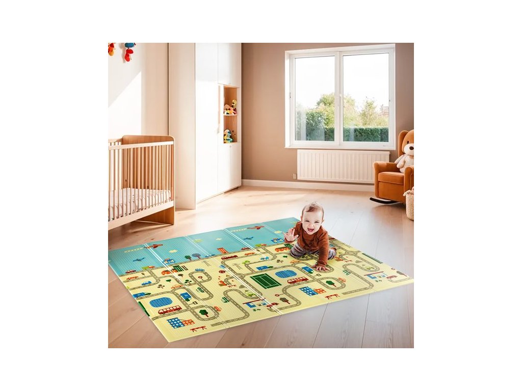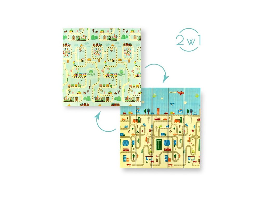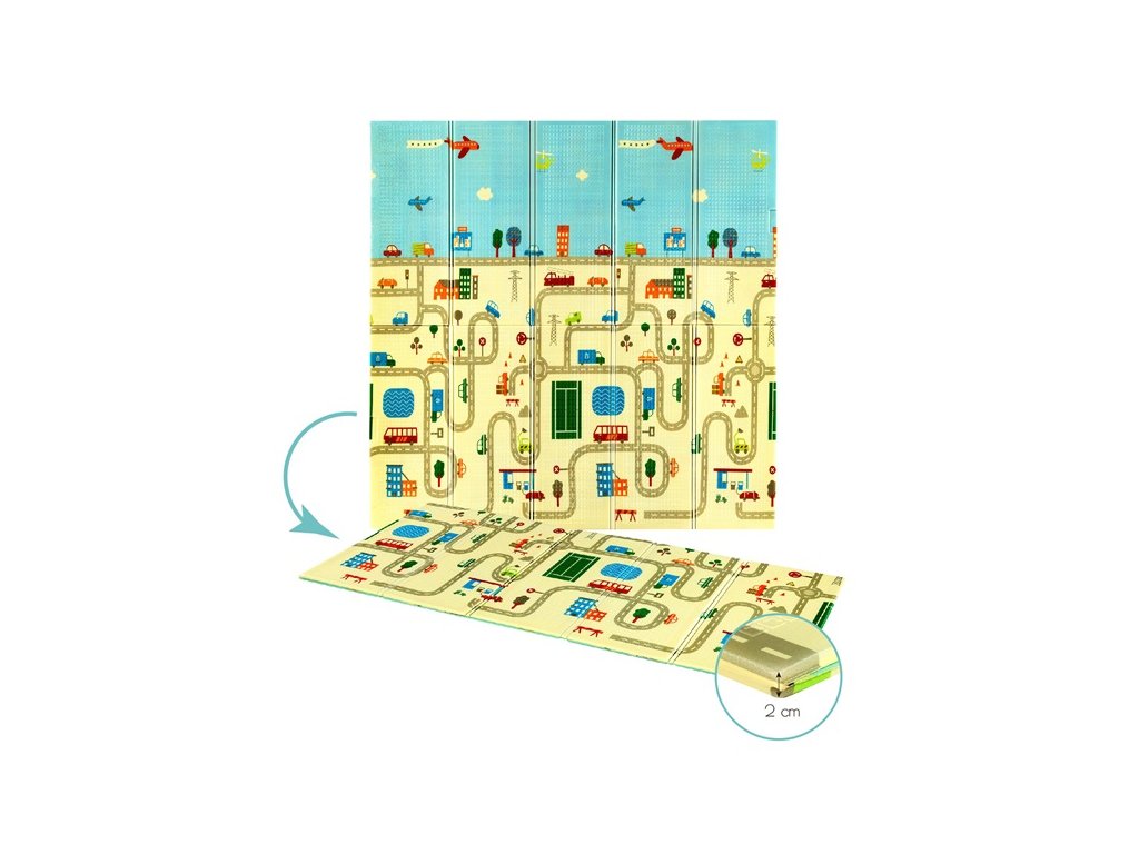 Podložka neslúži iba k hre, ale je tiež vzdelávacou pomôckou. Vďaka vyvýšeným čísliciam a písmenám, ktoré pomáhajú pri výučbe čítania, a ilustráciám rôznych budov, ulíc a vozidiel z mestskej krajiny podporuje zmyslový a kognitívny rozvoj dieťaťa. Obojstranný dizajn podložky umožňuje meniť scenérie, poskytuje rozmanité podnety a udržuje záujem vášho dieťaťa.