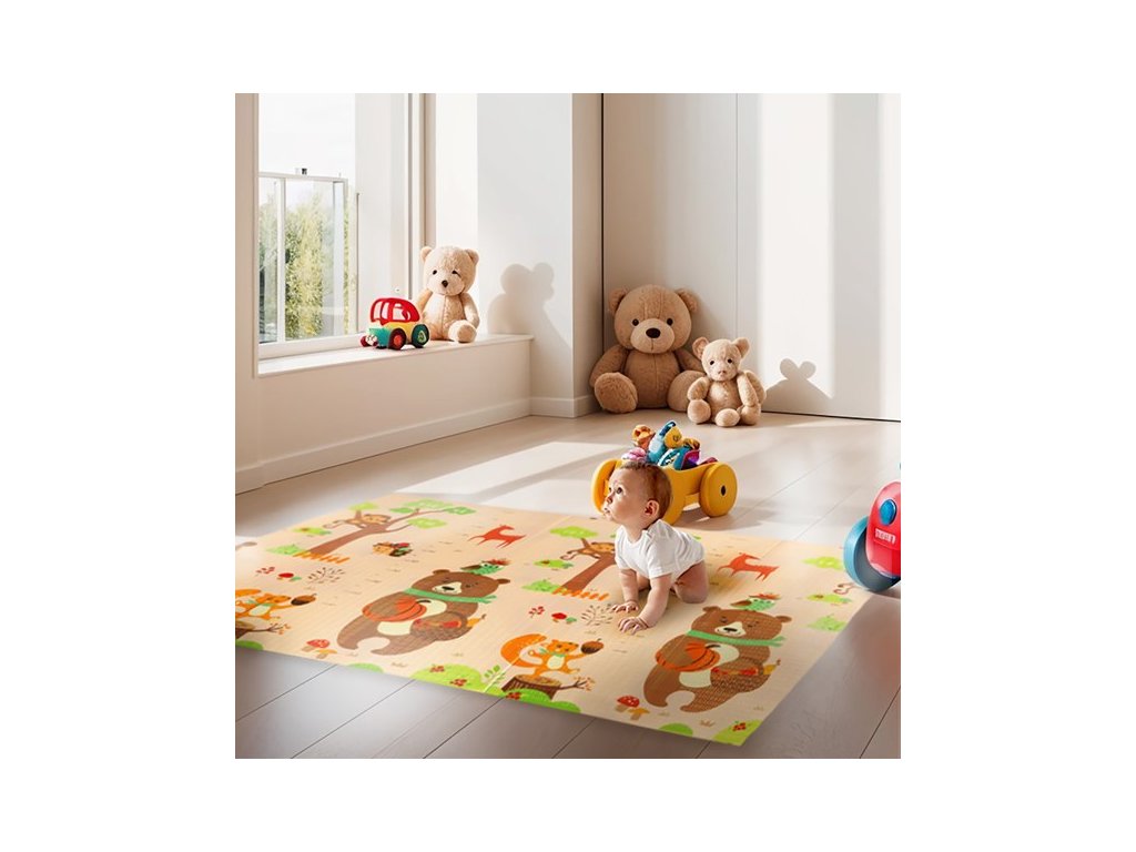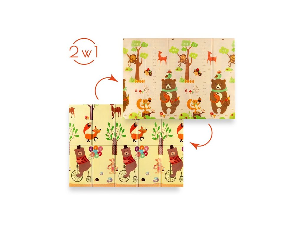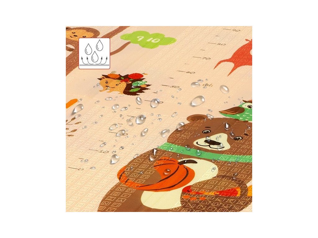 Okrem toho, že podložka slúži k hre, je tiež vzdelávacím nástrojom. Vďaka vyvýšeným čísliciam a písmenám, ktoré pomáhajú pri výučbe čítania, a ilustráciám lesných obyvateľov podporuje zmyslový a kognitívny vývoj vášho dieťaťa. Obojstranný dizajn podložky umožňuje meniť prostredie, poskytuje rozmanité podnety a udržuje záujem dieťaťa.