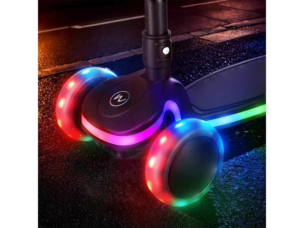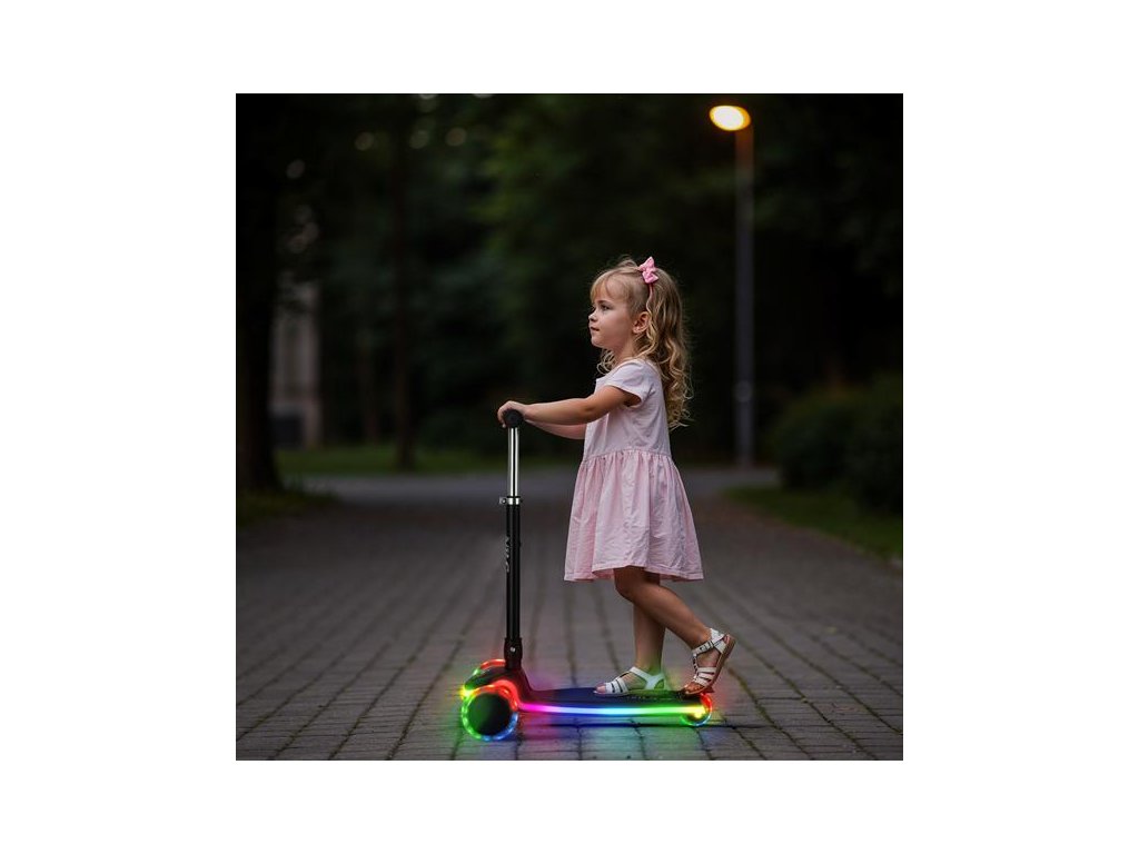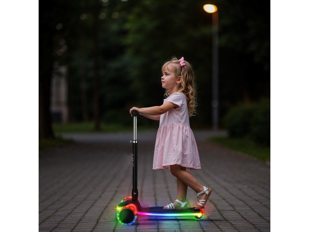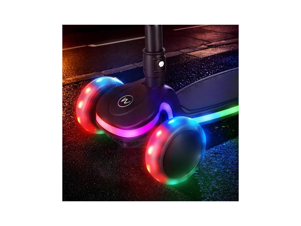 - LEDkami v platforme a kolieskach, ktoré po rozsvietení prispievajú k zábave a zvyšujú bezpečnosť vášho dieťaťa za zhoršených svetelných podmienok.