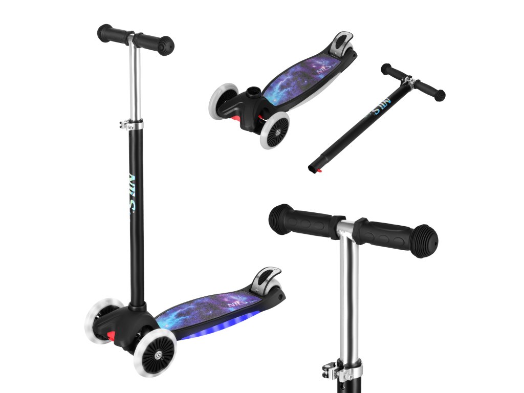 Detská trojkolesová kolobežka NILS Fun HLB1310 s LED čierna