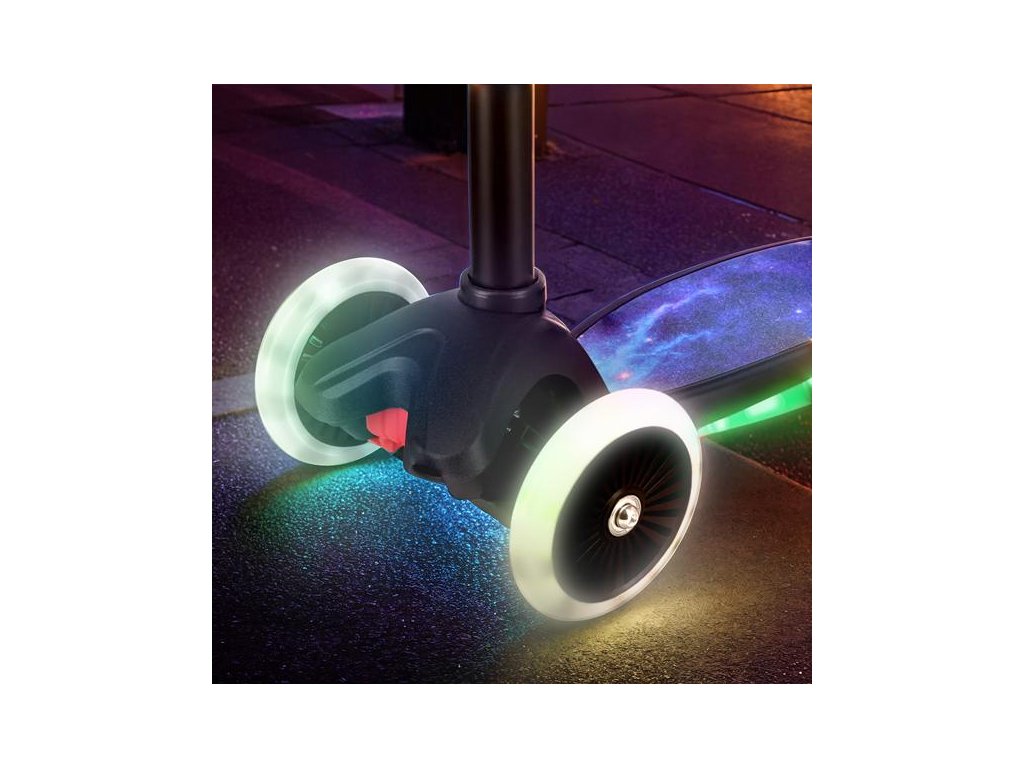 Bezpečnosť a pohodlie pri jazde sú prioritou, preto je kolobežka HLB1310 vybavená protišmykovou platformou s rozmermi 40 x 13,5 cm. Tá poskytuje detským nohám väčšiu priľnavosť, čo zvyšuje stabilitu a kontrolu nad kolobežkou. Svetelný efekt navyše dodáva kolobežke moderný, atraktívny vzhľad, ktorý osloví aj najmladších užívateľov. LED panely v platforme sú napájané 3 batériami AAA (LR03), ktoré je potrebné zakúpiť samostatne.