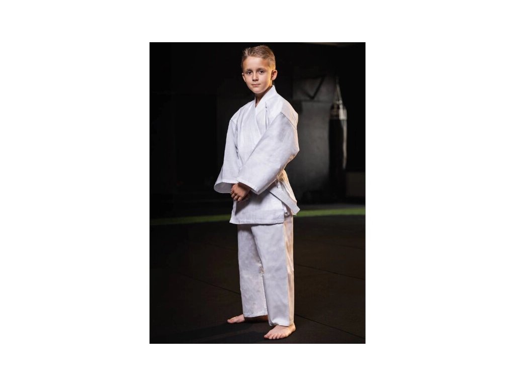 Ľahký a zároveň odolný materiál (zmes polyesteru a bavlny, cca 200 g/m2) zabezpečuje voľnosť pohybu a výbornú ventiláciu, vďaka čomu sa vaše dieťa môže naplno sústrediť na tréning. Pohodlný strih, systém zosilnení v rozkroku aj na okrajoch a dvojitý systém upevnenia nohavíc (guma + šnúrka) sú zárukou, že odev vydrží každý tréning a bude slúžiť dlhodobo.