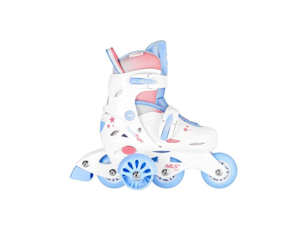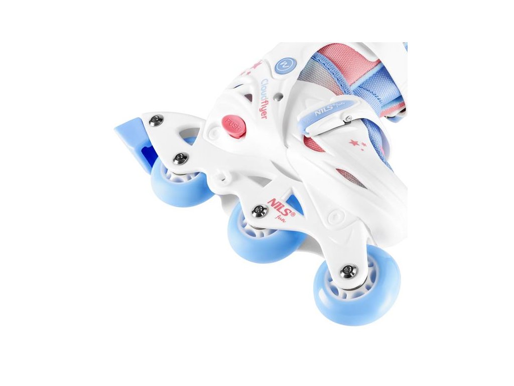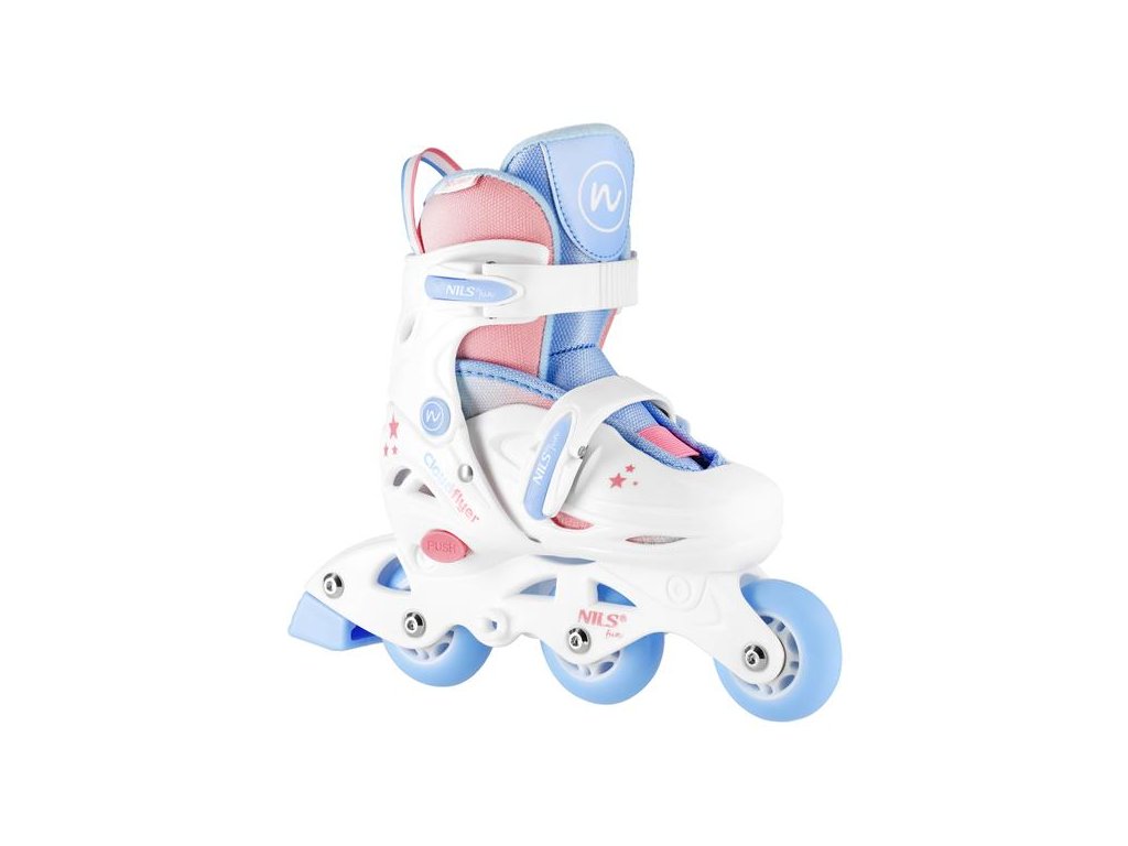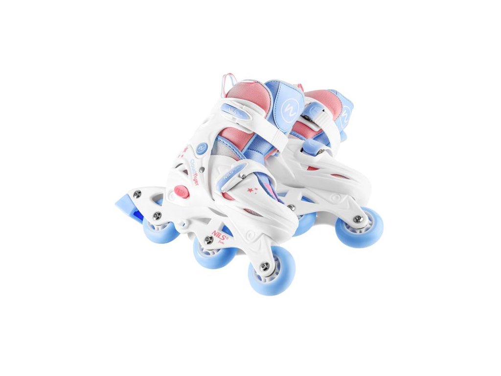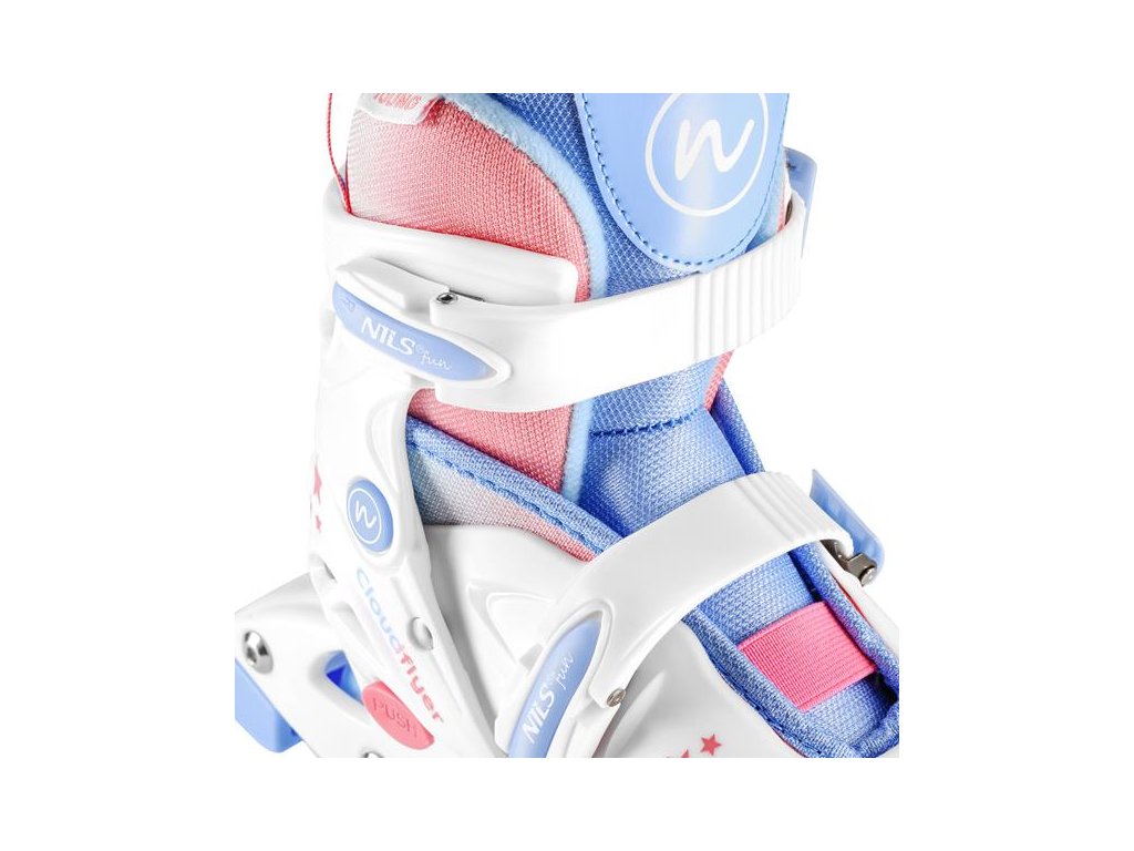 Korčule NJ1190 sú vybavené praktickým systémom zapínania na dve pracky, čo eliminuje nutnosť zaväzovania šnúrok. Vďaka tomu si dieťa môže korčule ľahko obuť aj zložiť samo, a rodičia sa nemusia obávať rozviazaných topánok počas jazdy.