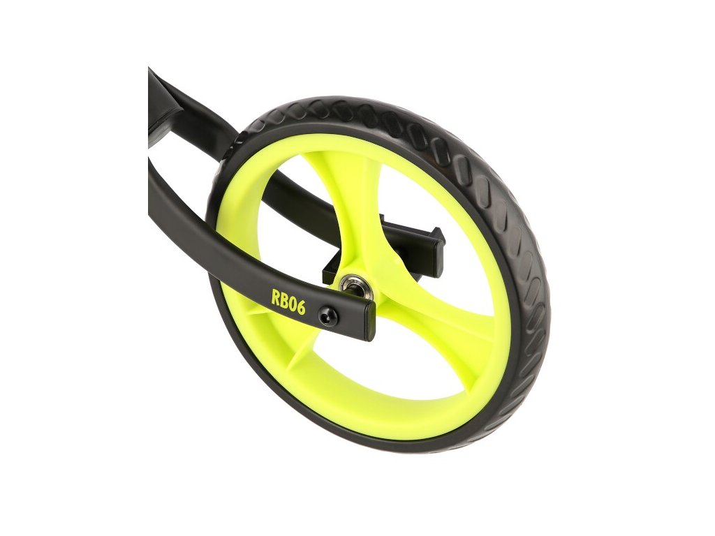 Konštrukcia RB06 je vyrobená o kvalitné, lakované ocele. Pre maximálne bezpečie sú všetky hrany zaoblené. Rukoväte sú osadené gripy s golierom na oboch stranách, ktorý zamedzuje sklznutie dlane. Stredové zloženie je vypaveno zarážkou, ktorá zamedzuje pretočeniu riadidiel. Plastové kolesá sú osadené 9 ", plnú pneumatikou, ktorá nejde preraziť. Ložiská ABEC 9 zaručujú plynulú jazdu. Riadidlá a sedlo sú výškovo nastaviteľné.