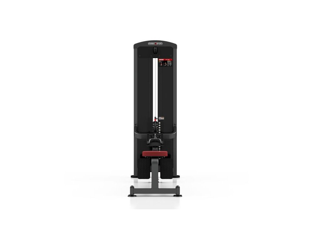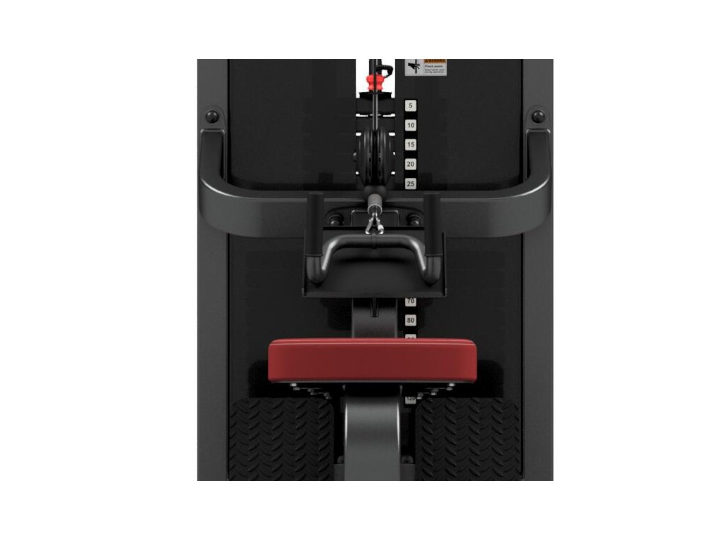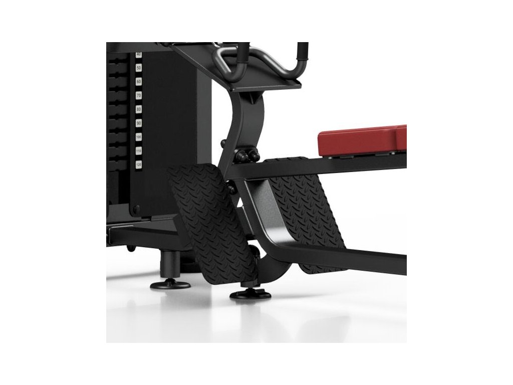 Dolná kladka MARBO MP-U207 je nekompromisný, profesionálne vybavenie pre Vašej posilňovňu. Pre výrobu boli zvolené oceľové profily 120x60x3mm a 80x40x3mm, ktoré zaručujú nečakanú trvanlivosť. Záťaž tvoria 8ks 5kg a 8ks 10kg tehál. Celková váha závažia dodávaná so strojom je teda 120kg. Tichý chod zaisťuje zakrytovanie čiernym plastom, z prednej časti je kryt opatrený priehľadom pre jednoduché nastavenie požadovaného počtu tehál. U kladky máte k dispozícii pogumovanou plochu pre odloženie adaptéra po cvičení. Polstrovanie je zo syntetickej kože zošité ražnú niťou značky COATS vyplnené tvrdou penou, to celé ja na 3mm hrubej, oceľové doske. Pre Veci efektivitu cvičenia je kladka vybavená veľkými, drážkovanými operami nôh. Stroj je navyše vybavený veľkou samolepkou, ktorá inštruuje cvičenca, aké cviky idú na stroji vykonávať a ktoré skupiny svalov daný cvik posilňuje.