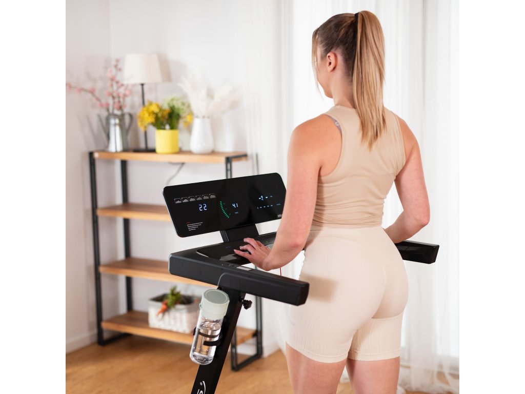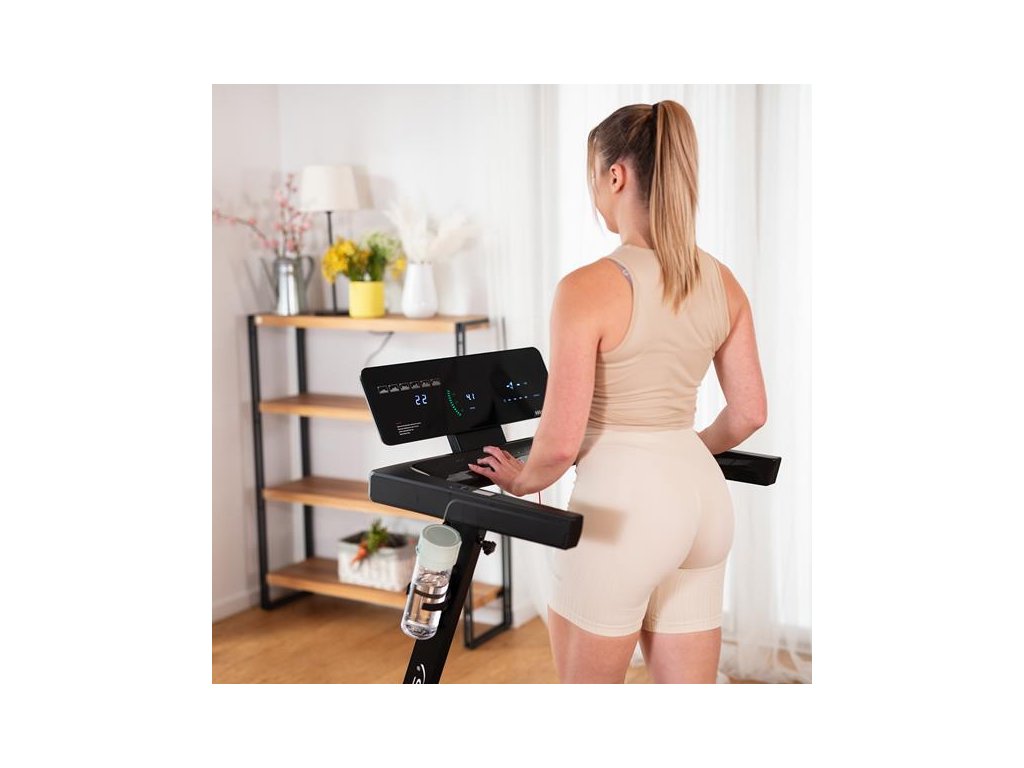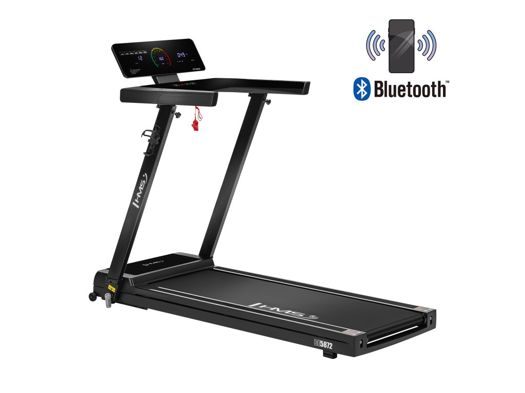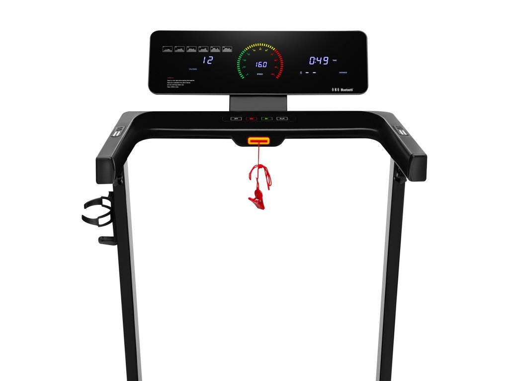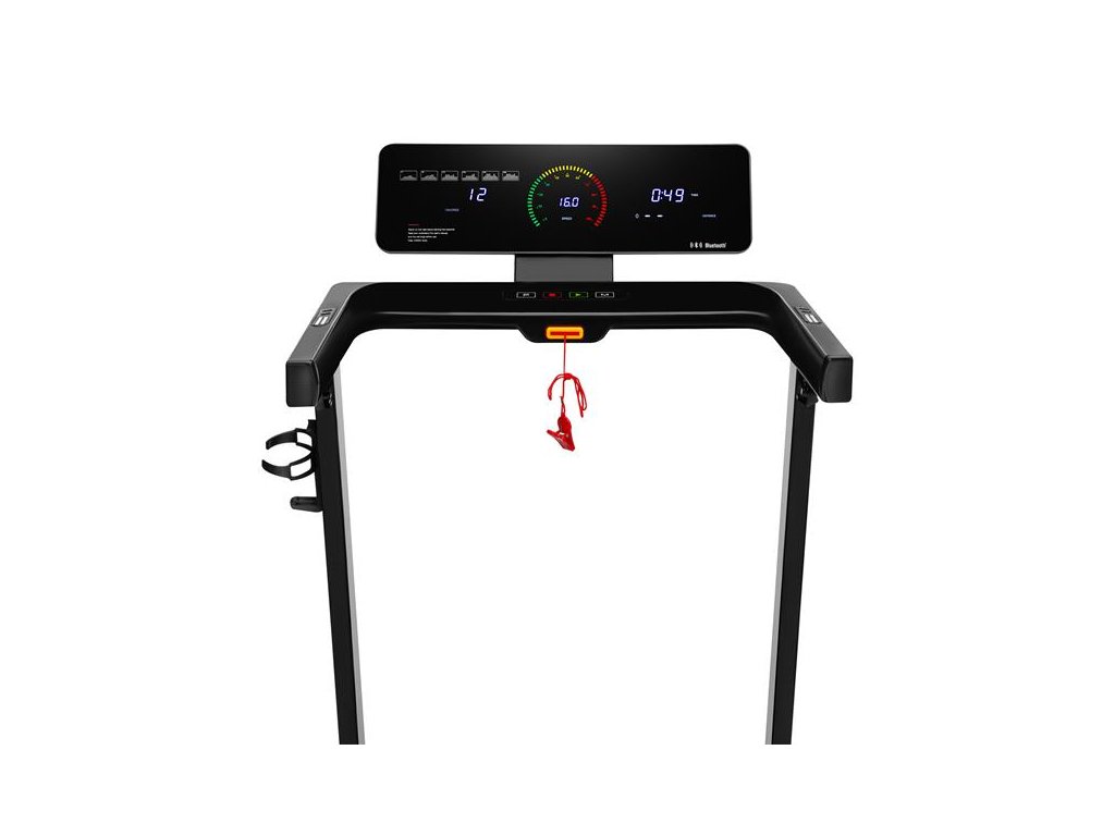 Bežecký pás BE5872 je rozšírený o držiak na tablet a fľašu, takže si môžete počas tréningu vychutnať svoj obľúbený seriál a zároveň dodržiavať pitný režim. Pre ešte väčší pôžitok z cvičenia má trenažér zabudovaný modul Bluetooth a reproduktor, ktorý vám umožní počúvať obľúbenú hudbu a používať tréningové aplikácie, ako sú Kinomap, Zwift a AnyRun.