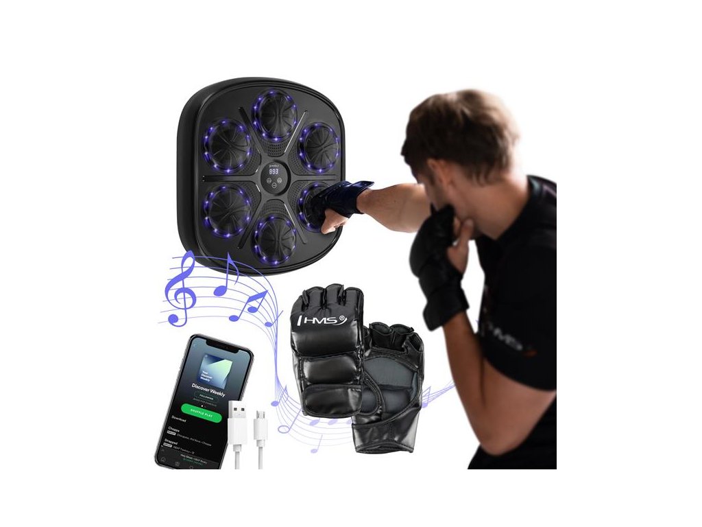 Elektronický boxerský terč HMS TB03 s LED, Bluetooth a rukavicami (Music Boxing Machine)