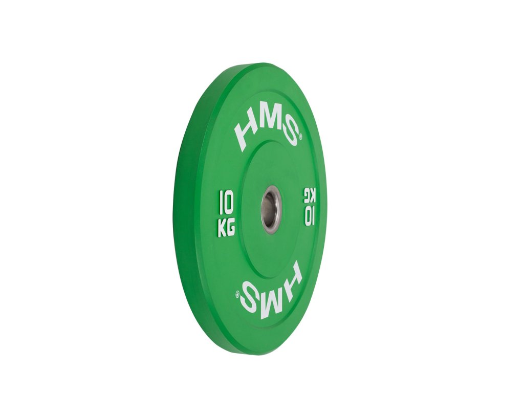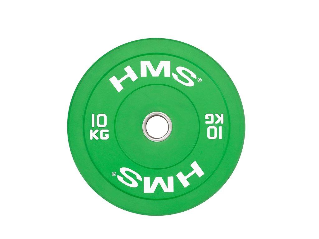 Farebný bumper kotúč HMS vhodný pre vzpieračský a funkční tréning. Jeho hlavným parametrom je odolnosť, kedy aj po hodu z veľkej výšky, zostane kotúč aj podložie bez známky poškodenia. Kotúč je určený pre olympijské osi s priemerom tŕňov 50 mm a je sfarbený podľa závodných parametrov.