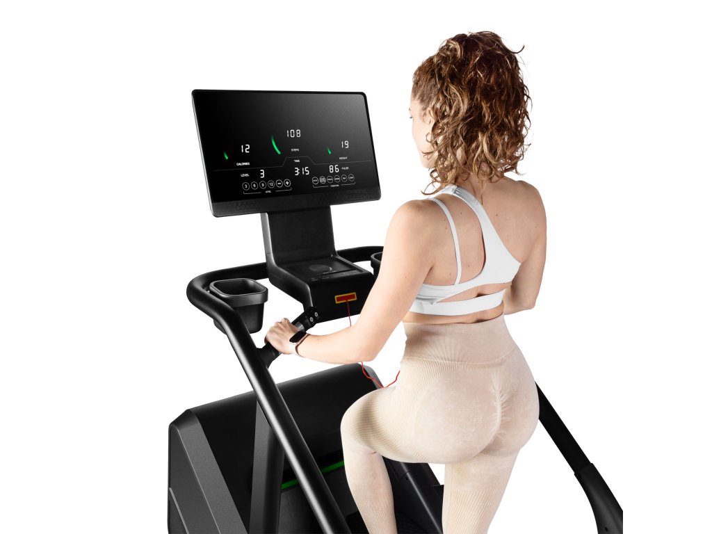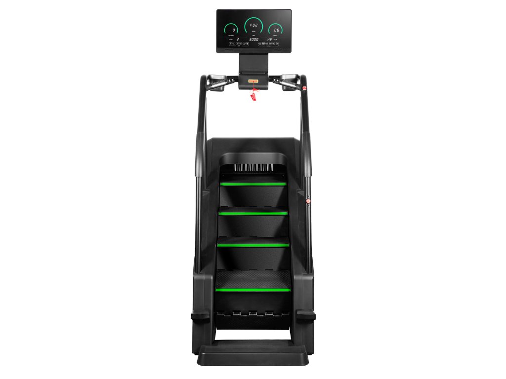 Stroj má robustnú konštrukciu, ktorá zaručuje stabilitu pri intenzívnom tréningu. Protišmykové schody pod uhlom 35 stupňov zaisťujú pohodlie a bezpečnosť pri používaní. Samoblokovací systém schody automaticky zastaví, ak je zaťaženie menšie ako 30 kg.