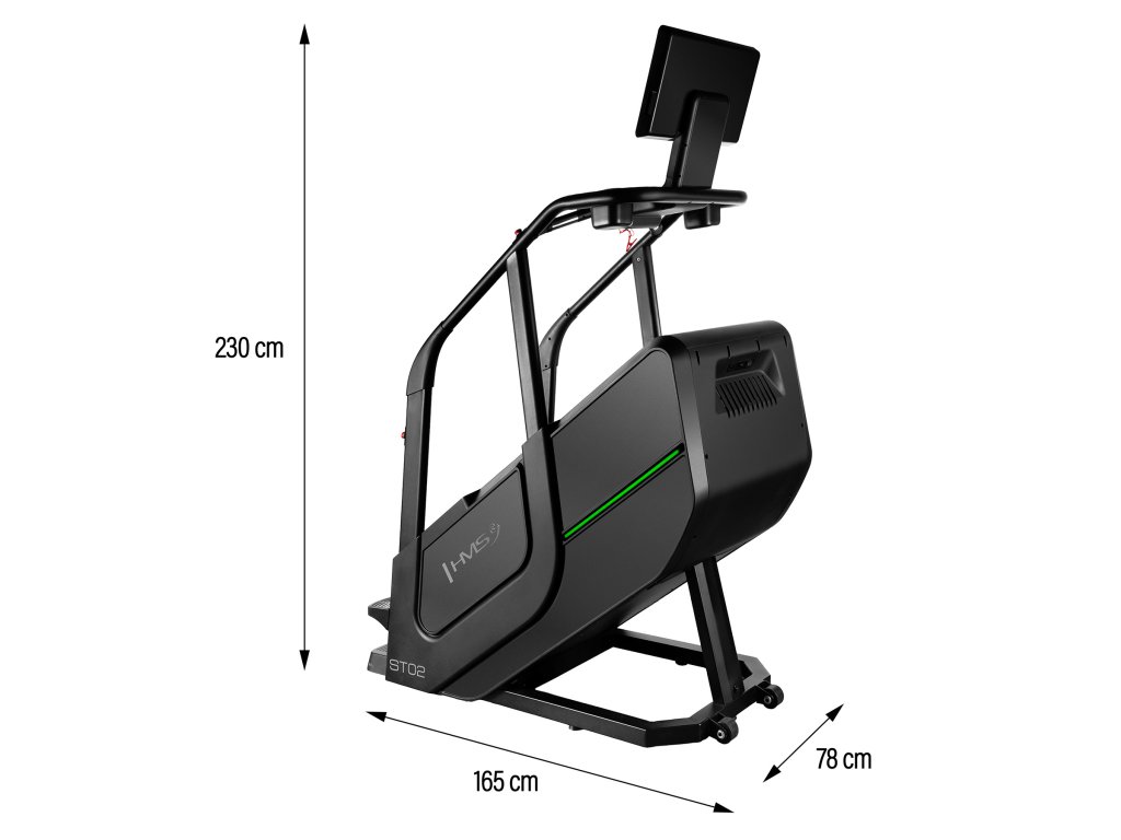 Schody ST02 je vybavený funkciami merania rýchlosti, počtu krokov, vystúpenej výšky, času, spálených kalórií, tepovej frekvencie a telesného tuku, ktoré vám umožnia sledovať vaše pokroky a prispôsobiť tréning vašim individuálnym cieľom. Bezdrôtová nabíjačka umožňuje pohodlné nabíjanie mobilných zariadení počas cvičenia. Intuitívny ovládací panel s tlačidlami pre reguláciu rýchlosti a tlačidlami štart/stop na držadlách zaisťuje jednoduché a rýchle ovládanie.