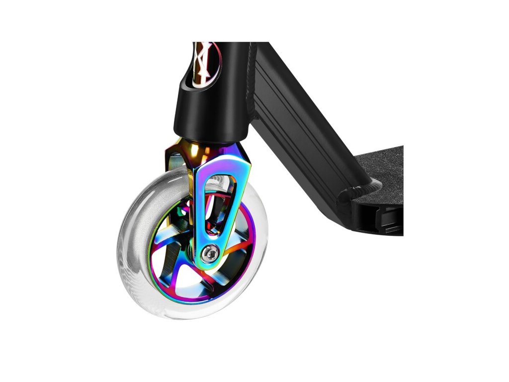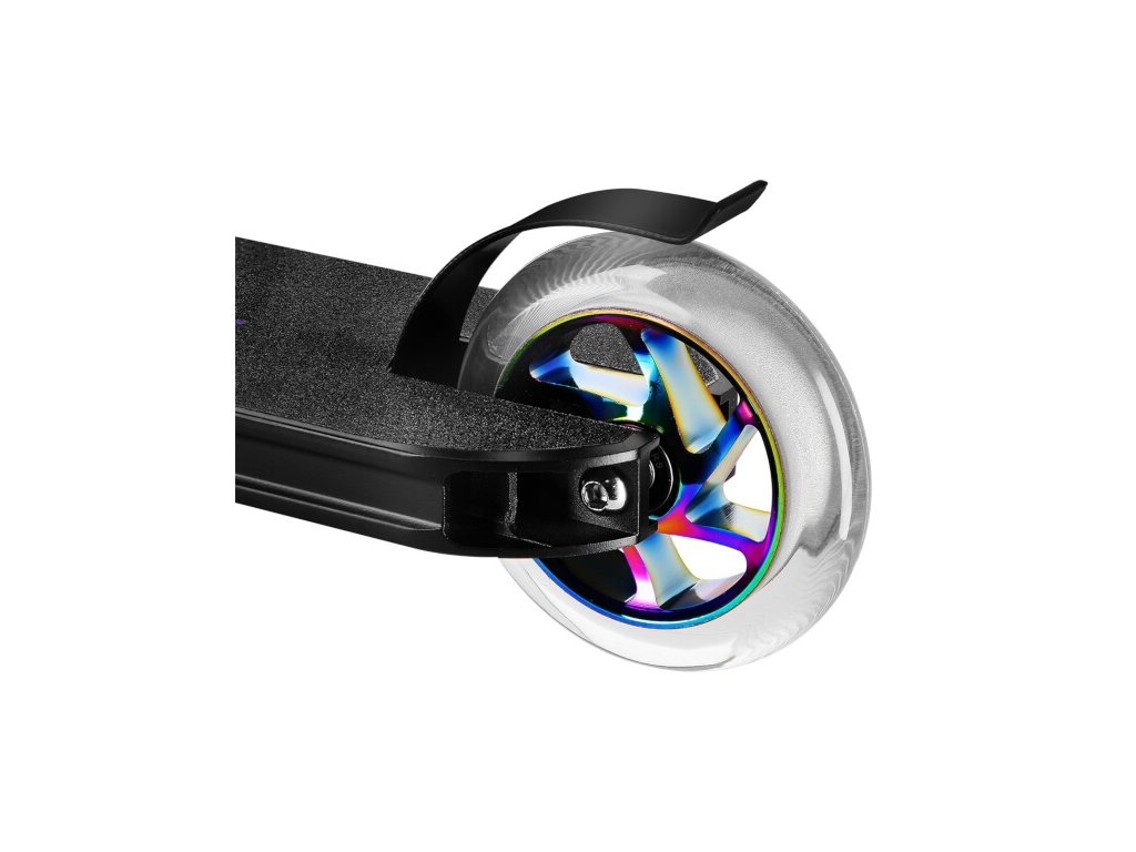 Kolobežka HS024 PRO je ideálna na asfaltové povrchy a spevnené cesty, ale nezľakne sa ani skateparku či U-rampy. Kolieska s rozmermi 110 x 24 mm s ložiskami ABEC9 zaručujú rýchlu a svižnú jazdu bez zbytočnej námahy. Zadná nášľapná brzda flex fender zaisťuje maximálnu bezpečnosť používania a umožňuje kolobežku okamžite zastaviť.