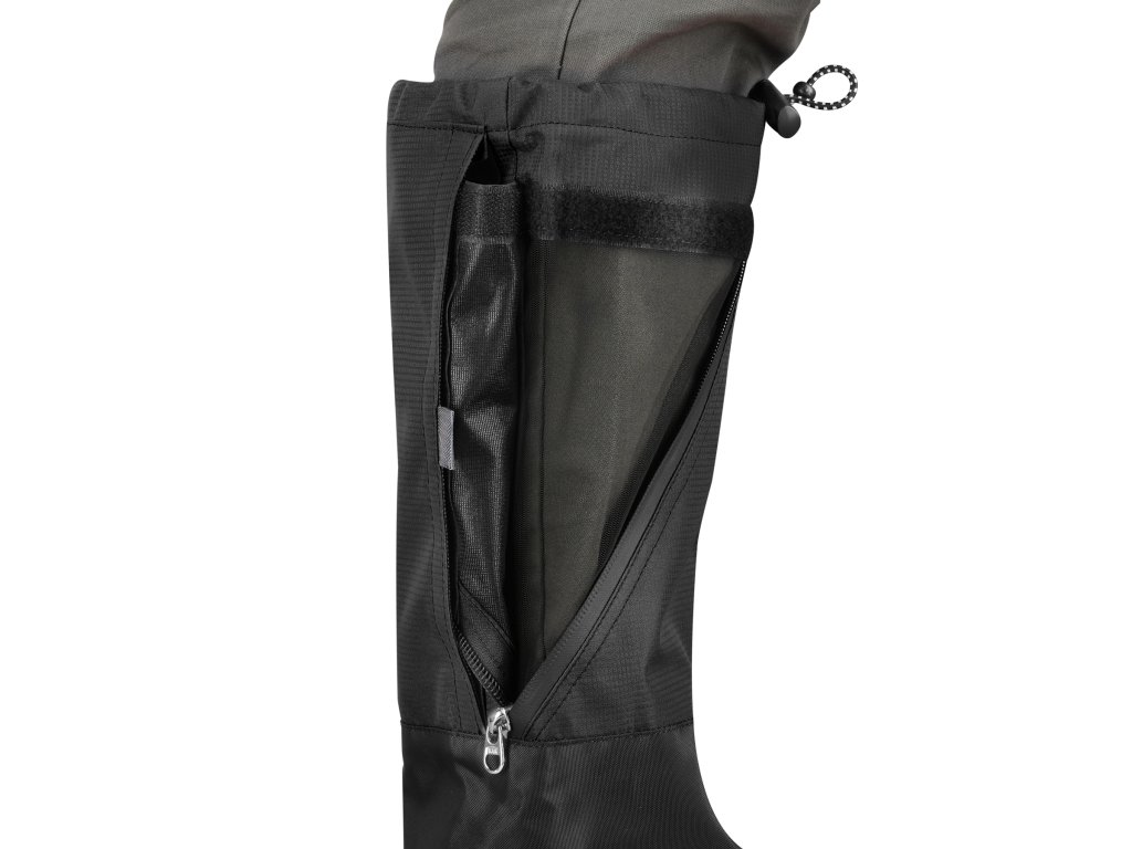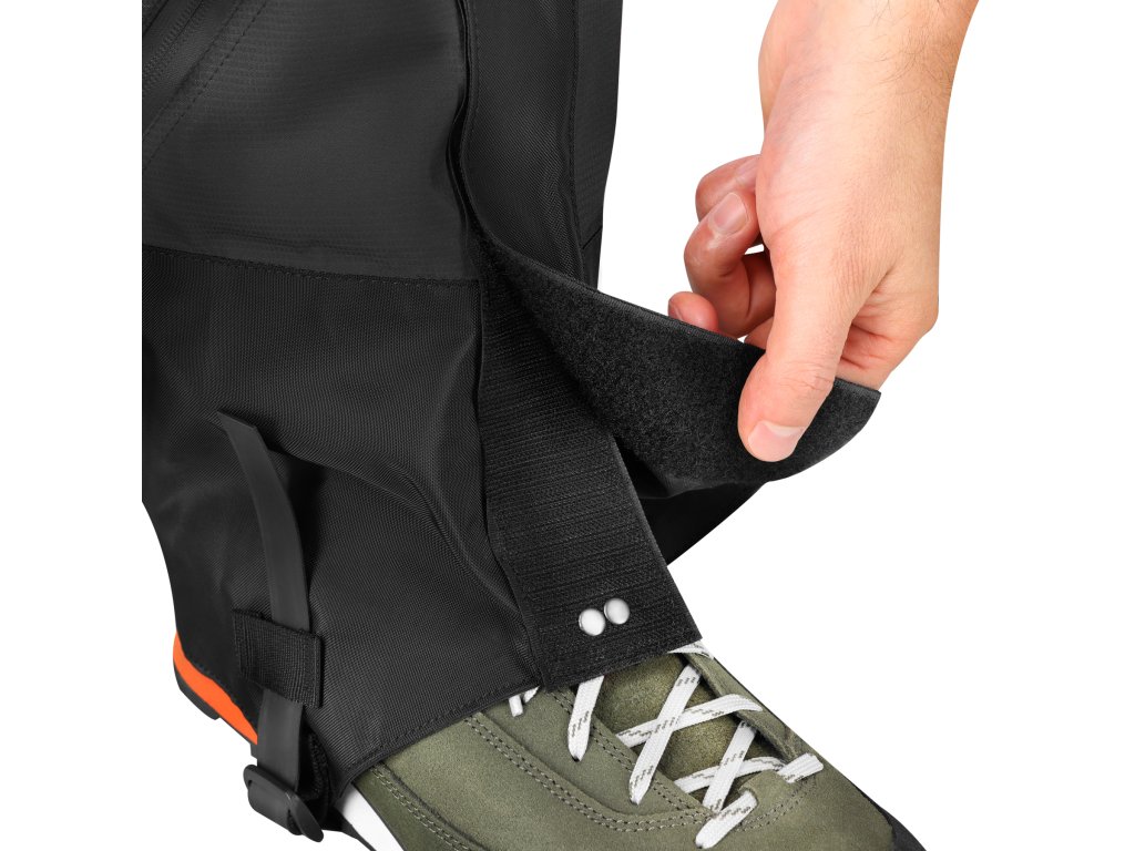 Návleky sa nasadzujú veľmi ľahko vďaka zapínaniu na suchý zips, ktoré umožňuje ich rýchle prispôsobenie nohe. Spodná časť sa zapne pomocou remienka pod topánkou a háčikom za šnúrky, návlek potom pevne prilieha k zvršku obuvi a chráni ho pred vlhkosťou aj nečistotami. Celá konštrukcia je navrhnutá s dôrazom na maximálnu jednoduchosť použitia a účinnosť v teréne.